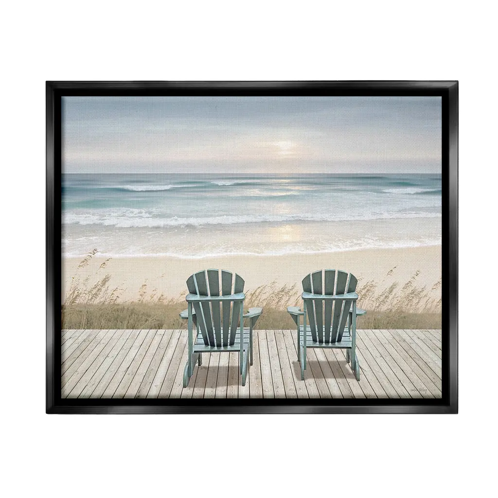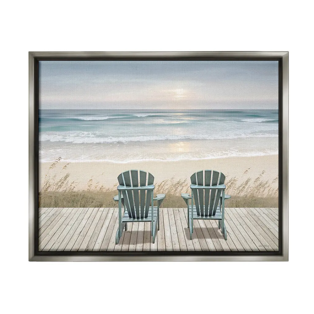 Stupell Chairs With Beach Sunrise Framed Floater Canvas Wall Art Design By Amber Sterling - 31 X 25 - Grey
