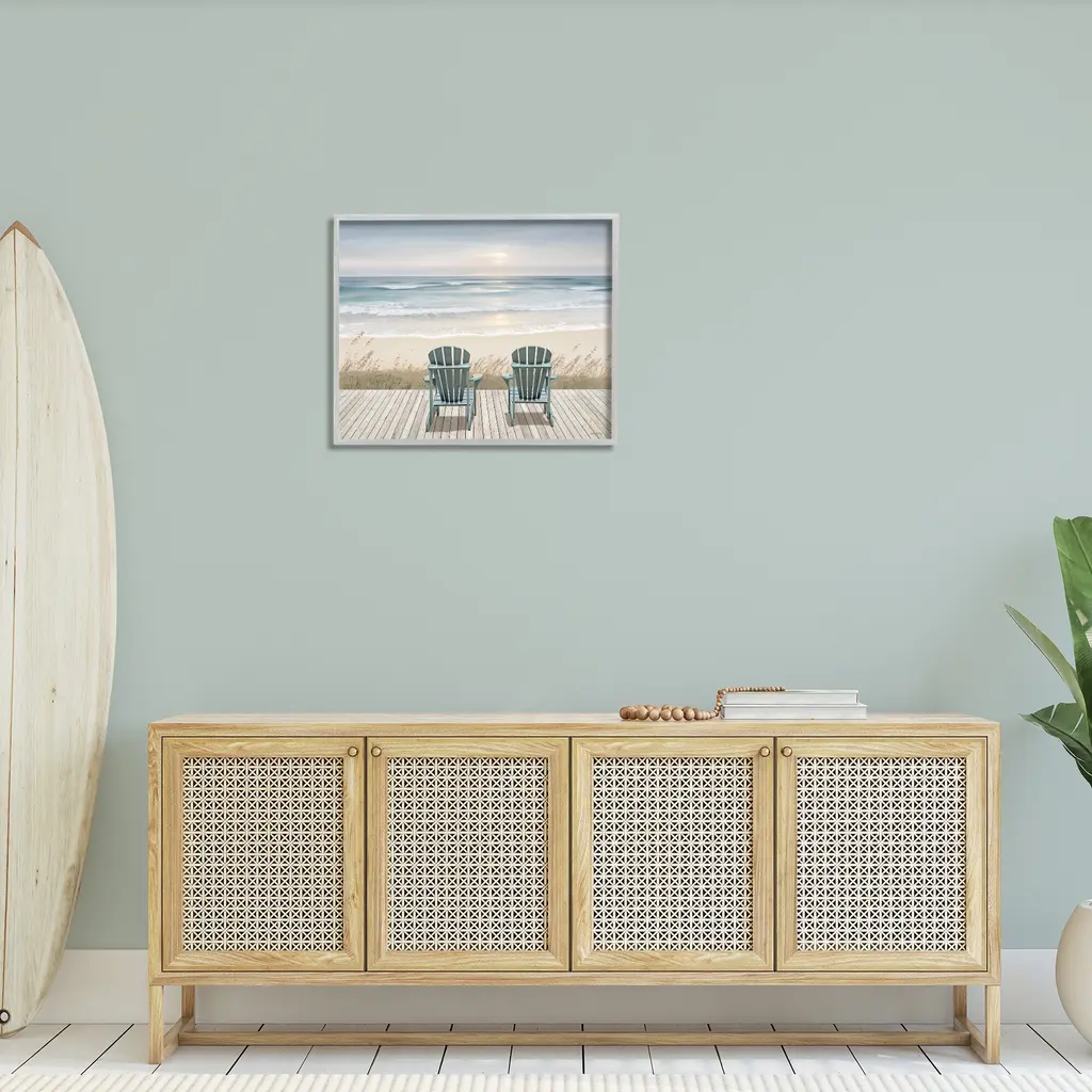 Add dimension to any room with our textured Framed Giclee Artwork. Our framed artwork is securely mounted into a 1.5-inch thick wood grain frame and ready to hang. Frames are available in three alluring styles: black, gray farmhouse and white. In addition, you should check out our oversized options if you want a statement piece. Stupell Wall Art is made in the USA.Features: Dimensions: 14 x 1.5 x 11 FramedFramed Giclee Products are available in the sizes 14"x11", 20"x16" or 30"x24". All Framed Giclee Products have a 1.5" Depth. Wall Art is Ready to Hang with Hardware Free Hanging. No installation required. For Easy Set Up Lean or Layer Artwork on Shelf or Against Wall.Our giclée prints are carefully mounted on a durable MDF backing, and then perfectly finished in a 1.5 inch thick woodgrain frame. Mounted frame colors include black, gray farmhouse and white. Made In USA.Artwork Relates To: Sea, Water, Beach, Coast, Shoreline, Sky, Scenery, Horizon, Landscape, Summer, Beach ChairDesign by Amber Sterling