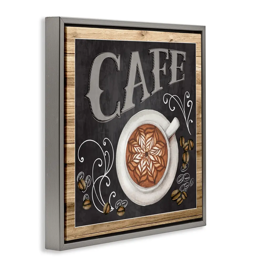 Elevate your home or office to the next level with Stupell Framed Floating Canvas Wall Art. Our premium hand-stretched canvas is mounted securely into a sturdy lightweight frame. The museum-style gap between the wrapped canvas and the box frame gives the illusion of floating artwork. Stupell Wall Art is made in the USA.Features: Dimensions: 18 x 1.7 x 18 Frame, 17 x 1.5 x 17 Canvas ArtFloating Frame Canvas Products are available in sizes 18"x18" and 25"x25". All Floating Frame Canvas Products have a 1.7" Depth.Wall Art is Ready to Hang with Hardware Free Hanging. No Installation required. For Easy Set Up Lean or Layer Artwork on Shelf or Against Wall. Artwork is Permently Fixed into the Frame.Our elevated 1.7" Thick Floating Frame is the perfect complement to our canvas style Wall Art. We use only the highest quality inks in house with industry leading printing solutions. Canvas is hand stretched over a durable wood foundation and then mounted securly into a Modern Box Frame. Made in the USA.Artwork Relates To: Coffee, Mug, Blackboard, Beverage, Drink, Kitchen, Vintage, ChalkboardDesign by ND Art