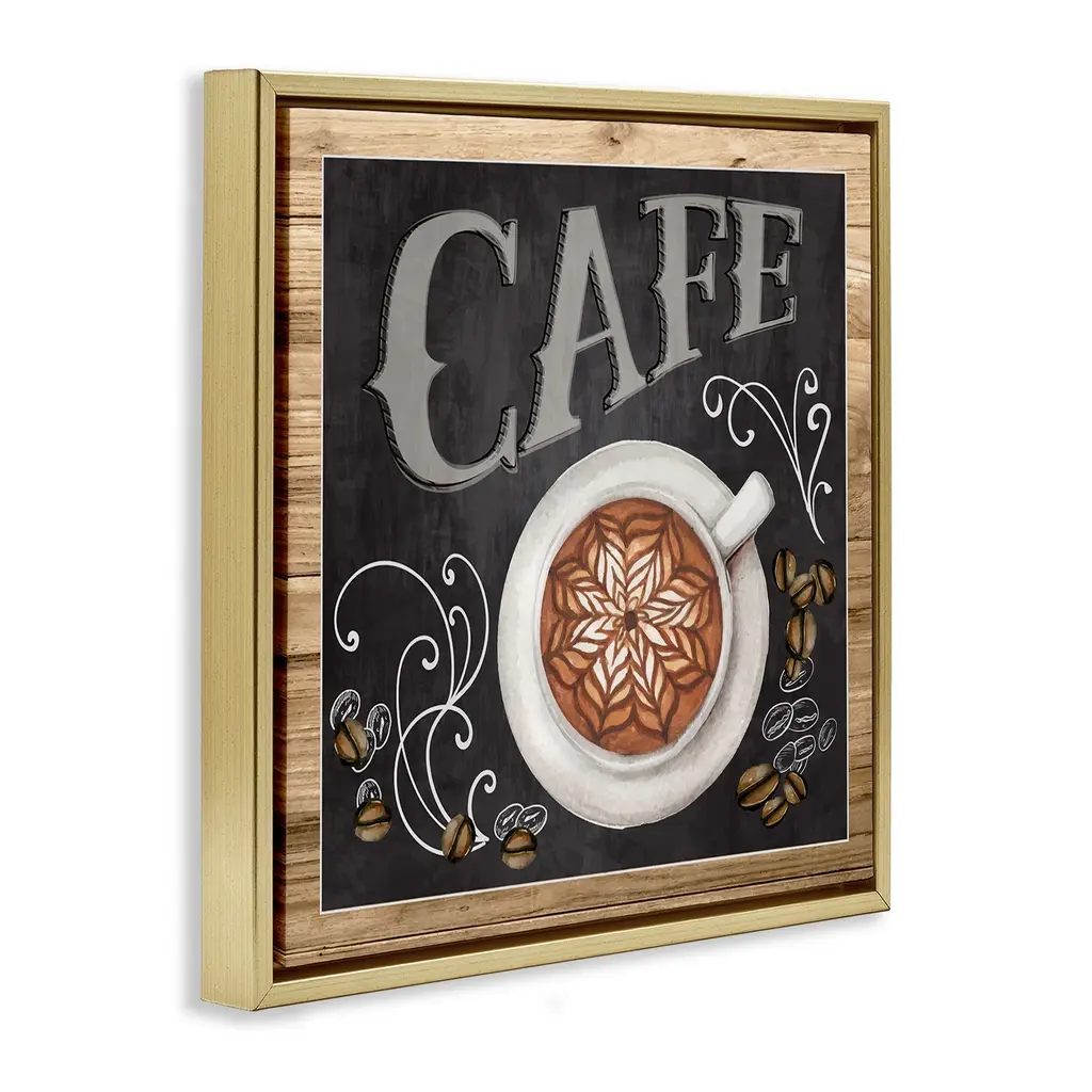Stupell Chalkboard Style Cafe Sign Framed Floater Canvas Wall Art Design By Nd Art - 25 X 25 - Gold