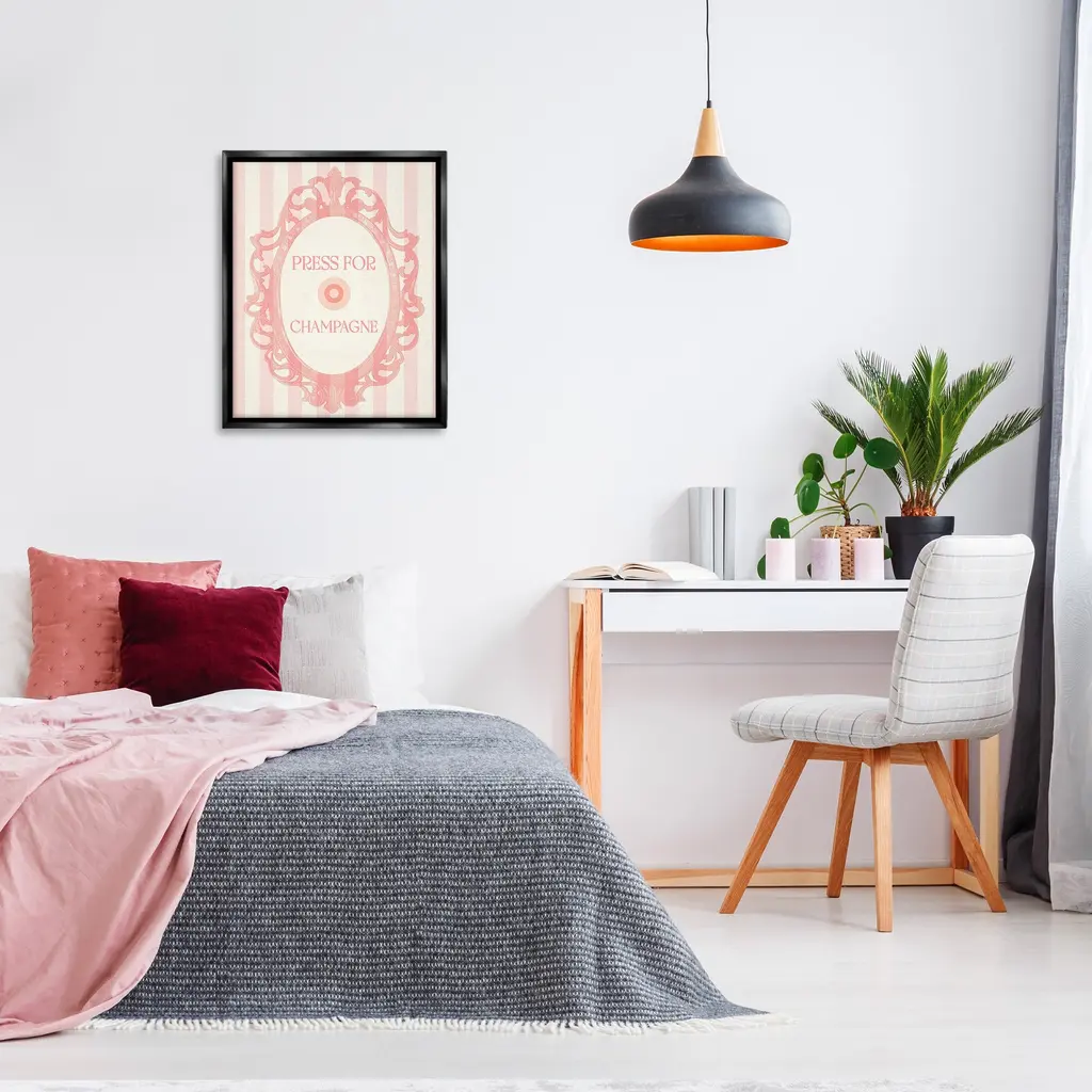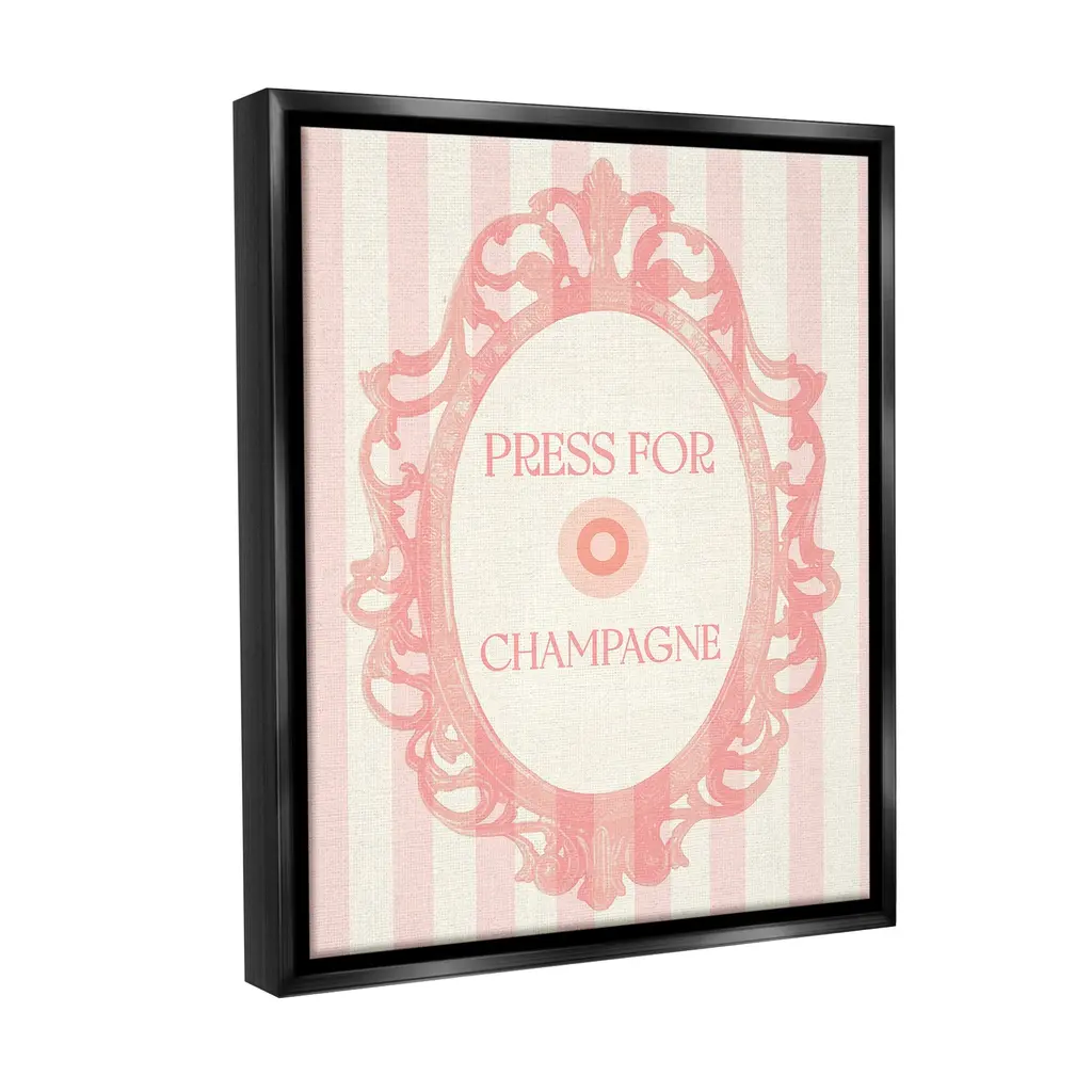 Elevate your home or office to the next level with Stupell Framed Floating Canvas Wall Art. Our premium hand-stretched canvas is mounted securely into a sturdy lightweight frame. The museum-style gap between the wrapped canvas and the box frame gives the illusion of floating artwork. Stupell Wall Art is made in the USA.Features: Dimensions: 17 x 1.7 x 21 Frame, 16 x 1.5 x 20 Canvas ArtFloating Frame Canvas Products are available in sizes 17"x21" and 25"x31". All Floating Frame Canvas Products have a 1.7" Depth.Wall Art is Ready to Hang with Hardware Free Hanging. No Installation required. For Easy Set Up Lean or Layer Artwork on Shelf or Against Wall. Artwork is Permently Fixed into the Frame.Our elevated 1.7" Thick Floating Frame is the perfect complement to our canvas style Wall Art. We use only the highest quality inks in house with industry leading printing solutions. Canvas is hand stretched over a durable wood foundation and then mounted securly into a Modern Box Frame. Made in the USA.Artwork Relates To: Glam, Fashion, Champagne, Liquor, Alcohol, Wine, Vintage, Pattern, Press For ChampagneDesign by Lil' Rue