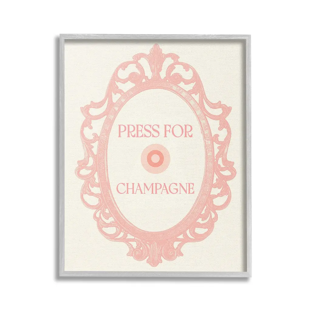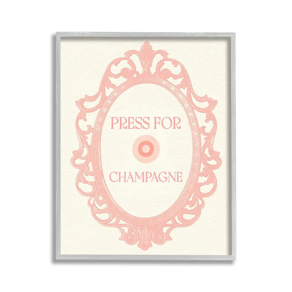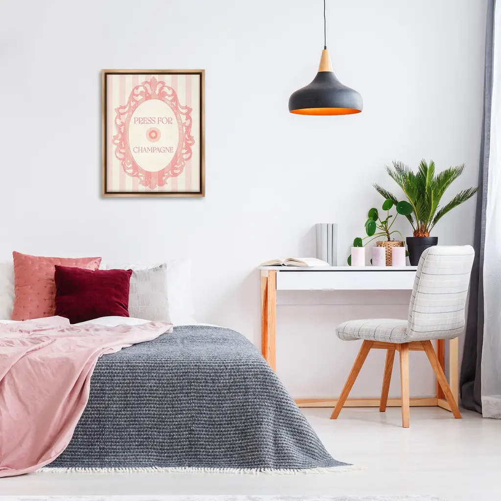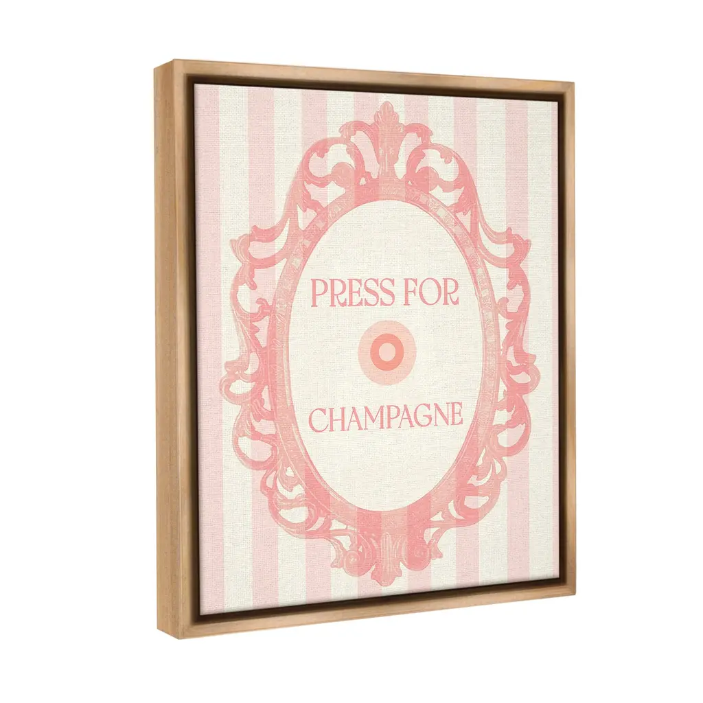 Elevate your home or office to the next level with Stupell Framed Floating Canvas Wall Art. Our premium hand-stretched canvas is mounted securely into a sturdy lightweight frame. The museum-style gap between the wrapped canvas and the box frame gives the illusion of floating artwork. Stupell Wall Art is made in the USA.Features: Dimensions: 17 x 1.7 x 21 Frame, 16 x 1.5 x 20 Canvas ArtFloating Frame Canvas Products are available in sizes 17"x21" and 25"x31". All Floating Frame Canvas Products have a 1.7" Depth.Wall Art is Ready to Hang with Hardware Free Hanging. No Installation required. For Easy Set Up Lean or Layer Artwork on Shelf or Against Wall. Artwork is Permently Fixed into the Frame.Our elevated 1.7" Thick Floating Frame is the perfect complement to our canvas style Wall Art. We use only the highest quality inks in house with industry leading printing solutions. Canvas is hand stretched over a durable wood foundation and then mounted securly into a Modern Box Frame. Made in the USA.Artwork Relates To: Glam, Fashion, Champagne, Liquor, Alcohol, Wine, Vintage, Pattern, Press For ChampagneDesign by Lil' Rue