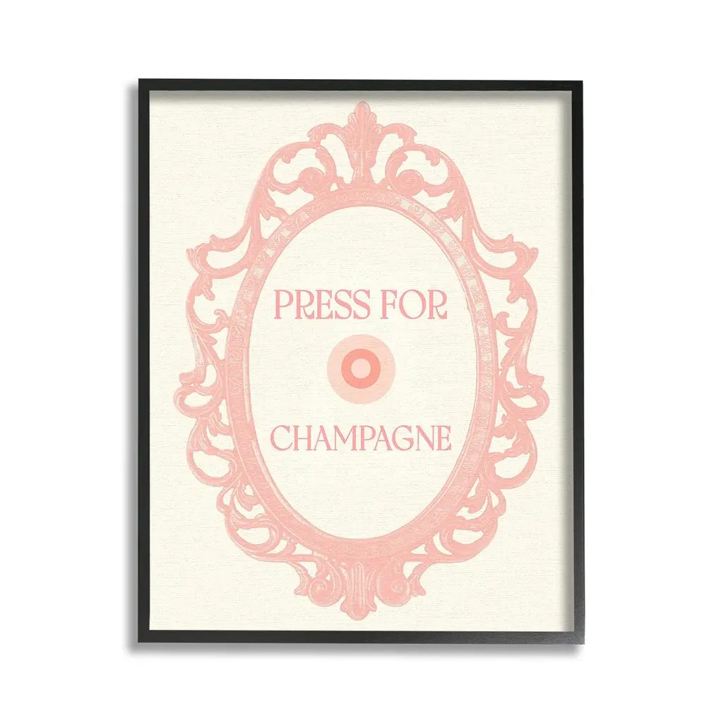 Add dimension to any room with our textured Framed Giclee Artwork. Our framed artwork is securely mounted into a 1.5-inch thick wood grain frame and ready to hang. Frames are available in three alluring styles: black, gray farmhouse and white. In addition, you should check out our oversized options if you want a statement piece. Stupell Wall Art is made in the USA.Features: Dimensions: 11 x 1.5 x 14 FramedFramed Giclee Products are available in the sizes 11"x14", 16"x20" or 24"x30". All Framed Giclee Products have a 1.5" Depth. Wall Art is Ready to Hang with Hardware Free Hanging. No installation required. For Easy Set Up Lean or Layer Artwork on Shelf or Against Wall.Our giclée prints are carefully mounted on a durable MDF backing, and then perfectly finished in a 1.5 inch thick woodgrain frame. Mounted frame colors include black, gray farmhouse and white. Made In USA.Artwork Relates To: Glam, Fashion, Champagne, Liquor, Alcohol, Wine, Vintage, Pattern, Press For ChampagneDesign by Lil' Rue