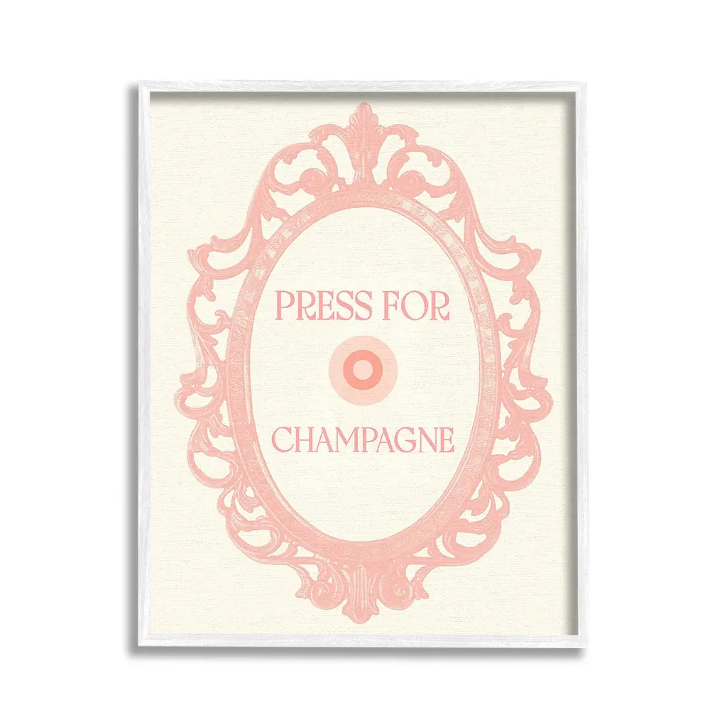 Add dimension to any room with our textured Framed Giclee Artwork. Our framed artwork is securely mounted into a 1.5-inch thick wood grain frame and ready to hang. Frames are available in three alluring styles: black, gray farmhouse and white. In addition, you should check out our oversized options if you want a statement piece. Stupell Wall Art is made in the USA.Features: Dimensions: 11 x 1.5 x 14 FramedFramed Giclee Products are available in the sizes 11"x14", 16"x20" or 24"x30". All Framed Giclee Products have a 1.5" Depth. Wall Art is Ready to Hang with Hardware Free Hanging. No installation required. For Easy Set Up Lean or Layer Artwork on Shelf or Against Wall.Our giclée prints are carefully mounted on a durable MDF backing, and then perfectly finished in a 1.5 inch thick woodgrain frame. Mounted frame colors include black, gray farmhouse and white. Made In USA.Artwork Relates To: Glam, Fashion, Champagne, Liquor, Alcohol, Wine, Vintage, Pattern, Press For ChampagneDesign by Lil' Rue