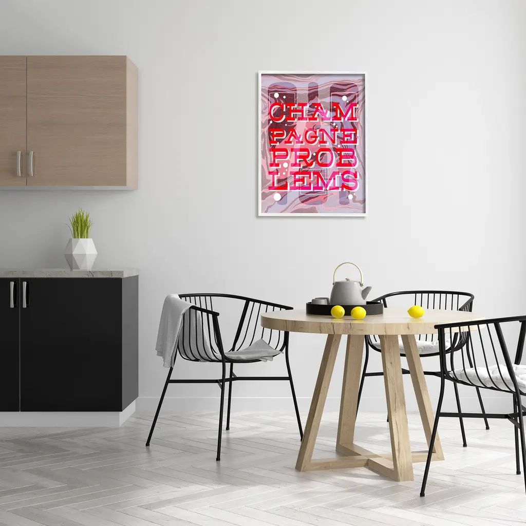 Add dimension to any room with our textured Framed Giclee Artwork. Our framed artwork is securely mounted into a 1.5-inch thick wood grain frame and ready to hang. Frames are available in three alluring styles: black, gray farmhouse and white. In addition, you should check out our oversized options if you want a statement piece. Stupell Wall Art is made in the USA.Features: Dimensions: 11 x 1.5 x 14 FramedFramed Giclee Sizes Include Standard: 11 x 1.5 x 14 Large: 16 x 1.5 x 20 Oversized: 24 x 1.5 x 30Wall Art is Ready to Hang - No Installation or Hardware Needed. For Easy Set Up Lean or Layer Artwork on Shelf or Against Wall.Our giclée prints are carefully mounted on a durable MDF backing, and then perfectly finished in a 1.5 inch thick woodgrain frame. Mounted frame colors include black, gray farmhouse and white. Made In USA.Artwork Relates To: Alcohol, Beverage, Cocktail, Bar, Kitchen, Champagne, Champagne ProblemsDesign by Lil' Rue