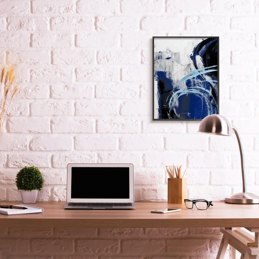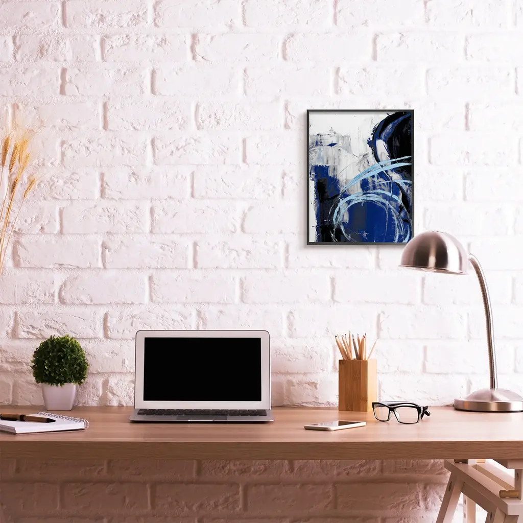 Stupell Chaotic Blue Movements Indigo Abstract Design Framed Wall Art - 16 X 20 - Grey