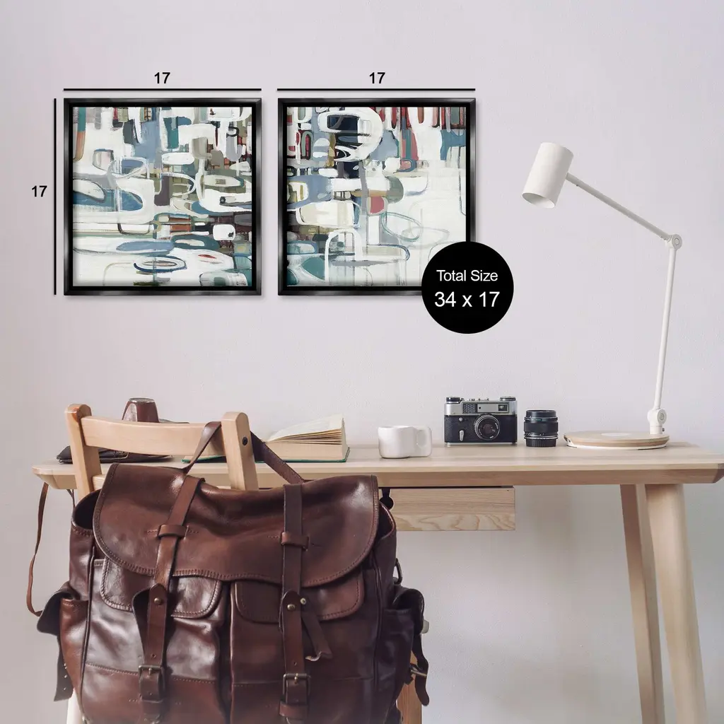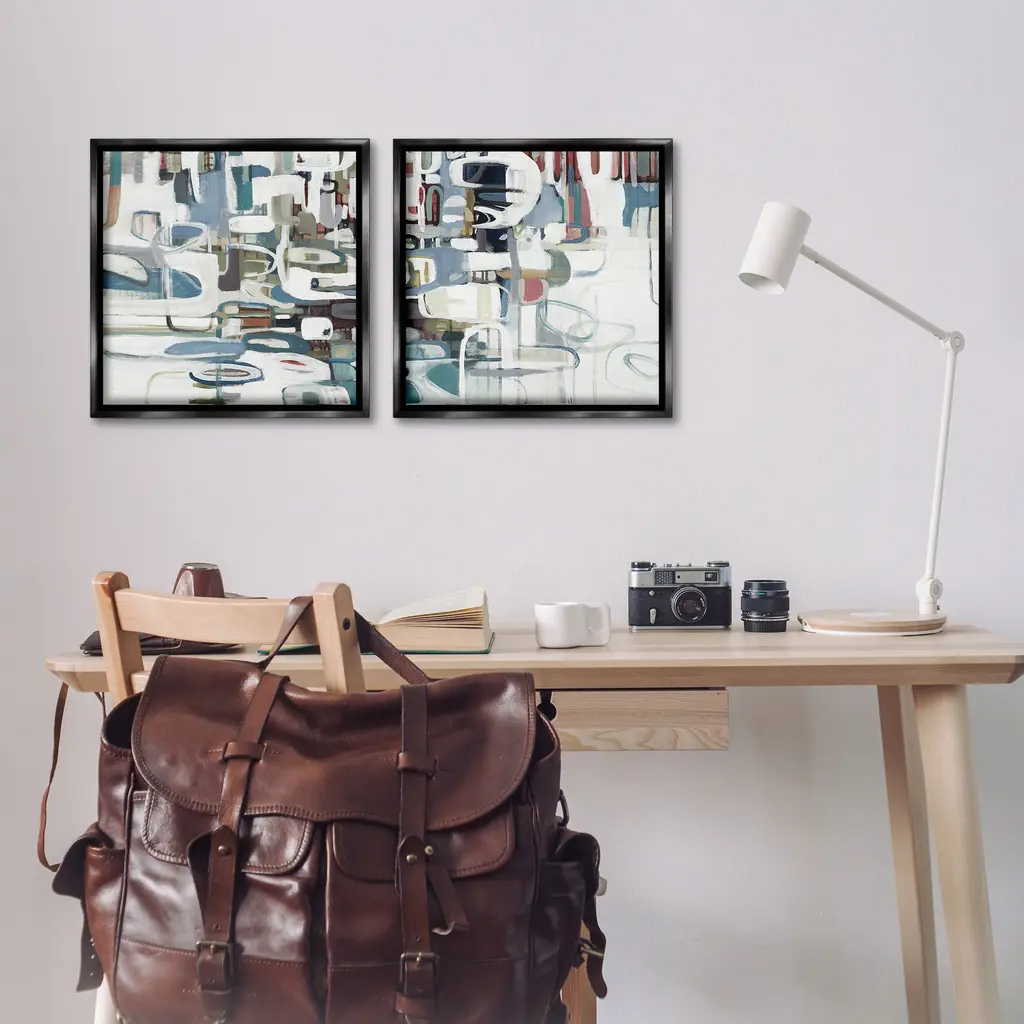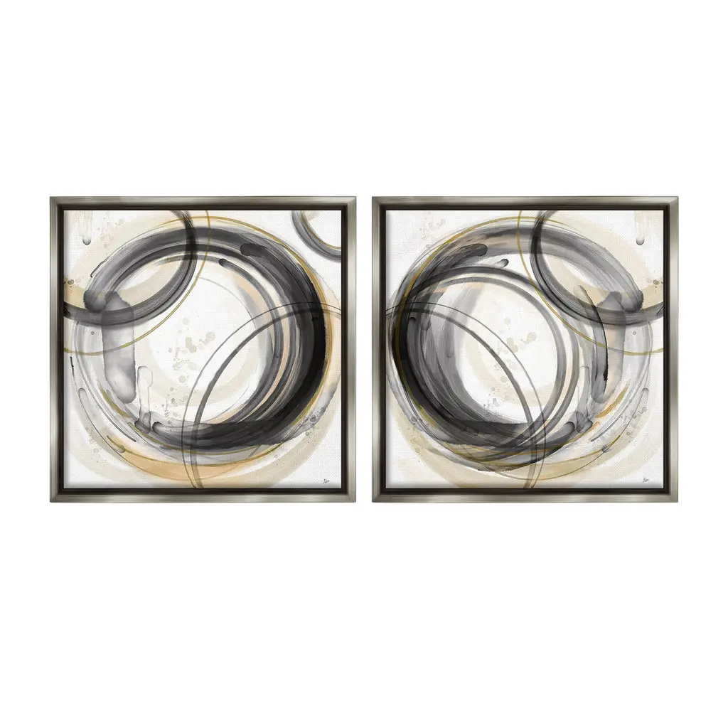 Elevate your home or office to the next level with Stupell Framed Floating Canvas Wall Art. Our premium hand-stretched canvas is mounted securely into a sturdy lightweight frame. The museum-style gap between the wrapped canvas and the box frame gives the illusion of floating artwork. Stupell Wall Art is made in the USA.Features: Dimensions: 2 Piece Set, Each Frame is 18 x 1.7 x 18Two Piece Floating Frame Canvas Products are available as 18"x18" or 25"x25" Panels. All Floating Frame Canvas Products have a 1.7" Depth.Wall Art is Ready to Hang with Hardware Free Hanging. No Installation required. For Easy Set Up Lean or Layer Artwork on Shelf or Against Wall. Artwork is Permently Fixed into the Frame.Our elevated 1.7" Thick Floating Frame is the perfect complement to our canvas style Wall Art. We use only the highest quality inks in house with industry leading printing solutions. Canvas is hand stretched over a durable wood foundation and then mounted securly into a Modern Box Frame. Made in the USA.Artwork Relates To: Abstract, Modern, Pattern, GeometricDesign by Lisa Ridgers