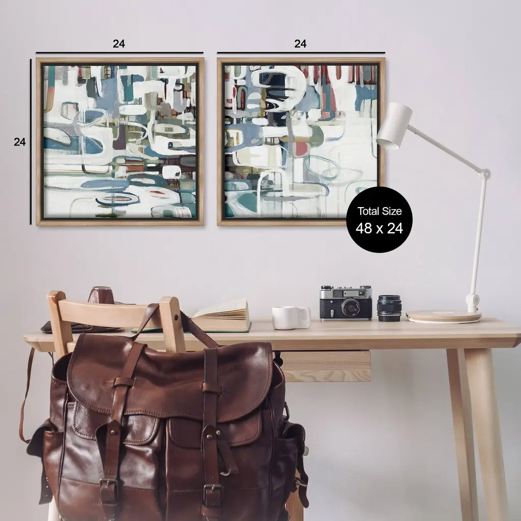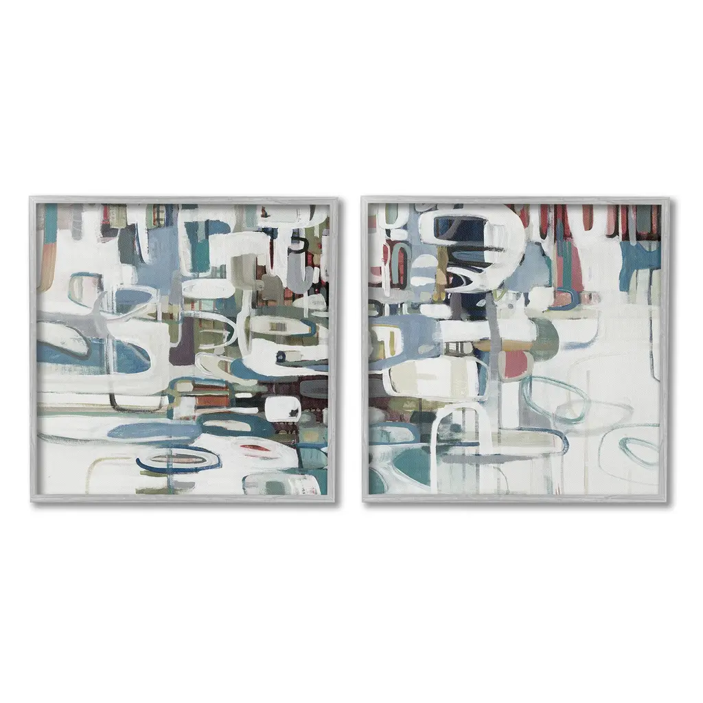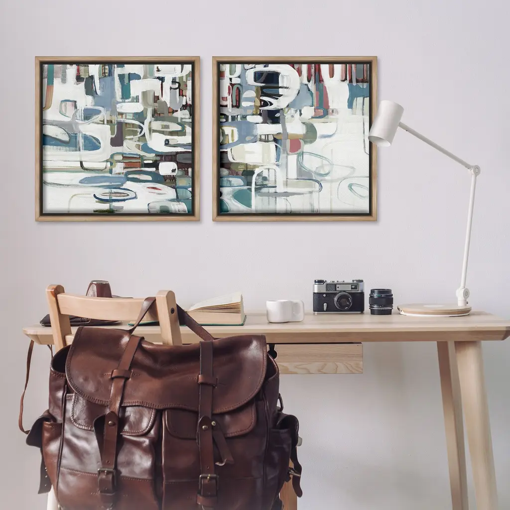 Elevate your home or office to the next level with Stupell Framed Floating Canvas Wall Art. Our premium hand-stretched canvas is mounted securely into a sturdy lightweight frame. The museum-style gap between the wrapped canvas and the box frame gives the illusion of floating artwork. Stupell Wall Art is made in the USA.Features: Dimensions: 2 Piece Set, Each Frame is 18 x 1.7 x 18Two Piece Floating Frame Canvas Products are available as 18"x18" or 25"x25" Panels. All Floating Frame Canvas Products have a 1.7" Depth.Wall Art is Ready to Hang with Hardware Free Hanging. No Installation required. For Easy Set Up Lean or Layer Artwork on Shelf or Against Wall. Artwork is Permently Fixed into the Frame.Our elevated 1.7" Thick Floating Frame is the perfect complement to our canvas style Wall Art. We use only the highest quality inks in house with industry leading printing solutions. Canvas is hand stretched over a durable wood foundation and then mounted securly into a Modern Box Frame. Made in the USA.Artwork Relates To: Abstract, Modern, Pattern, GeometricDesign by Lisa Ridgers