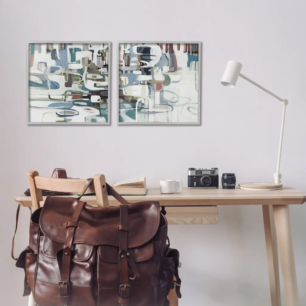 Fill any space in your home or office with our Framed Wall Art Sets. Our framed artwork is securely mounted into a 1.5-inch thick wood grain frame and ready to hang. Frames are available in three alluring styles: black, gray farmhouse and white. Stupell Wall Art is made in the USA.Features: Dimensions: 2 Piece Set, Each Panel is 12 x 1.5 x 12 FramedTwo Piece Framed Giclee Sets are available as 12"x12", 17"x17" or 24"x24" Panels. All Framed giclee Products have a 1.5" Depth.Wall Art is Ready to Hang with Hardware Free Hanging. No installation required. For Easy Set Up Lean or Layer Artwork on Shelf or Against Wall.Curated Wall Art Sets make it easy for you complete the theme for any room. Our giclée prints are carefully mounted on a durable MDF backing, and then perfectly finished in a 1.5 inch thick woodgrain frame. Mounted frame colors include black, gray farmhouse and white. Made In USA.Artwork Relates To: Abstract, Modern, Pattern, GeometricDesign by Lisa Ridgers