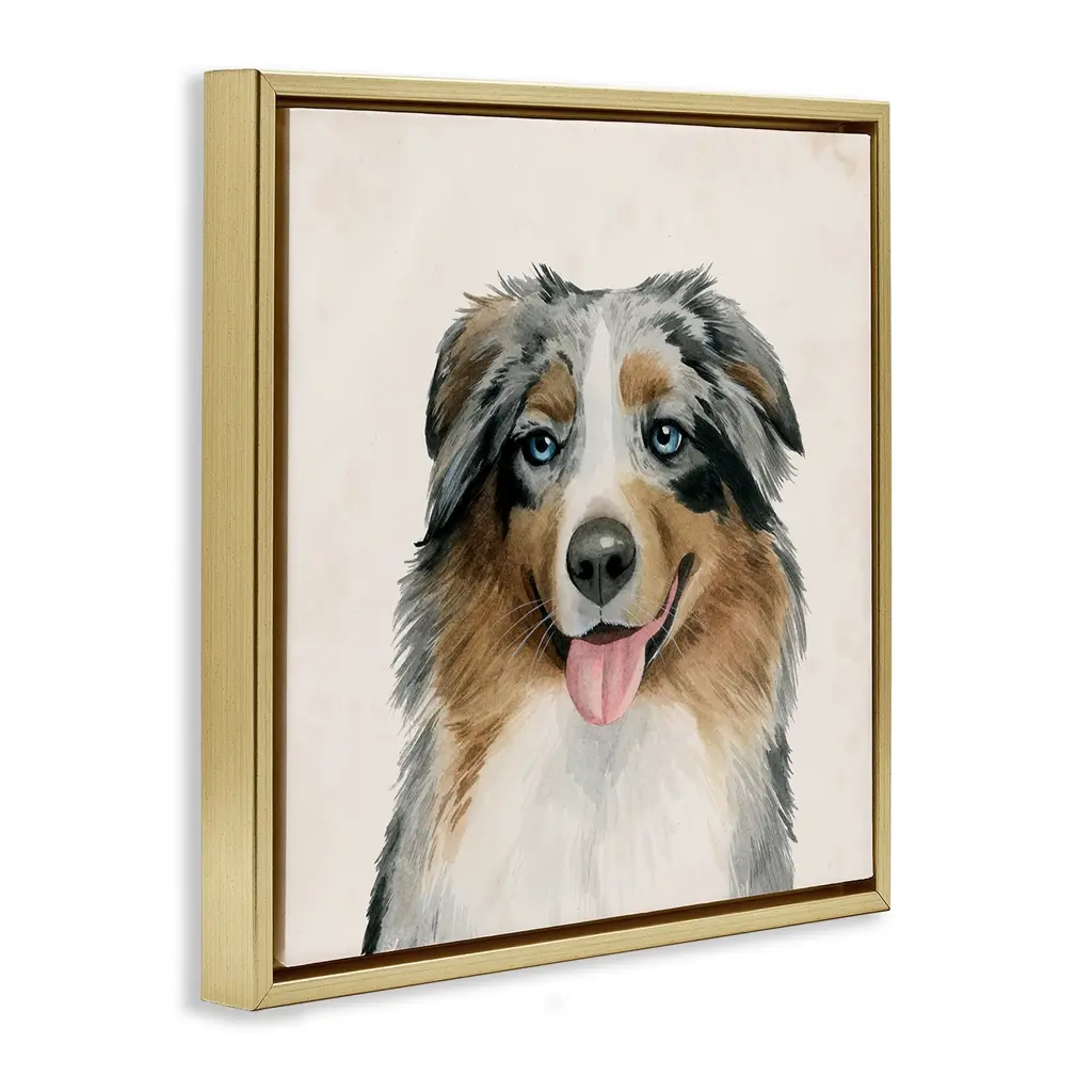 Stupell Charming Australian Shepard Dog Framed Floater Canvas Wall Art Design By Grace Popp - 18 X 18 - Gold
