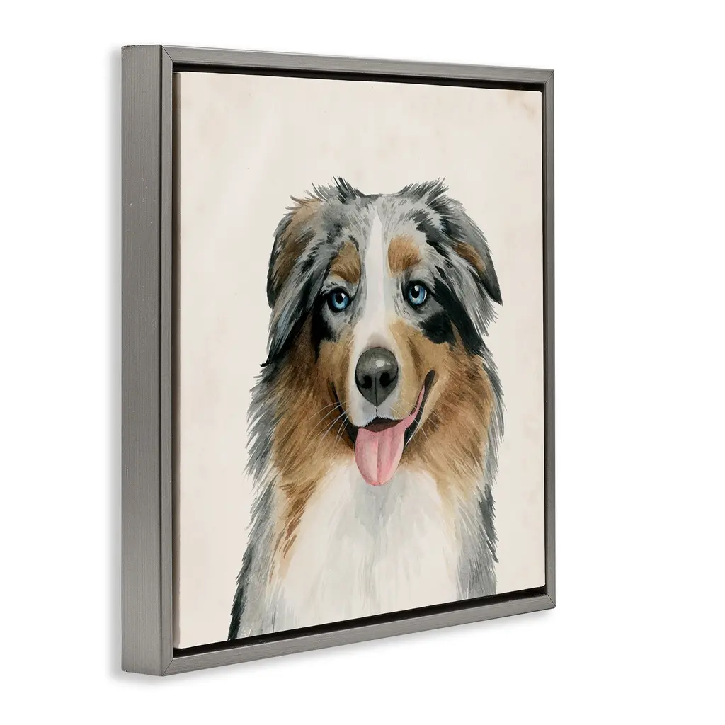 Stupell Charming Australian Shepard Dog Framed Floater Canvas Wall Art Design By Grace Popp - 18 X 18 - Grey