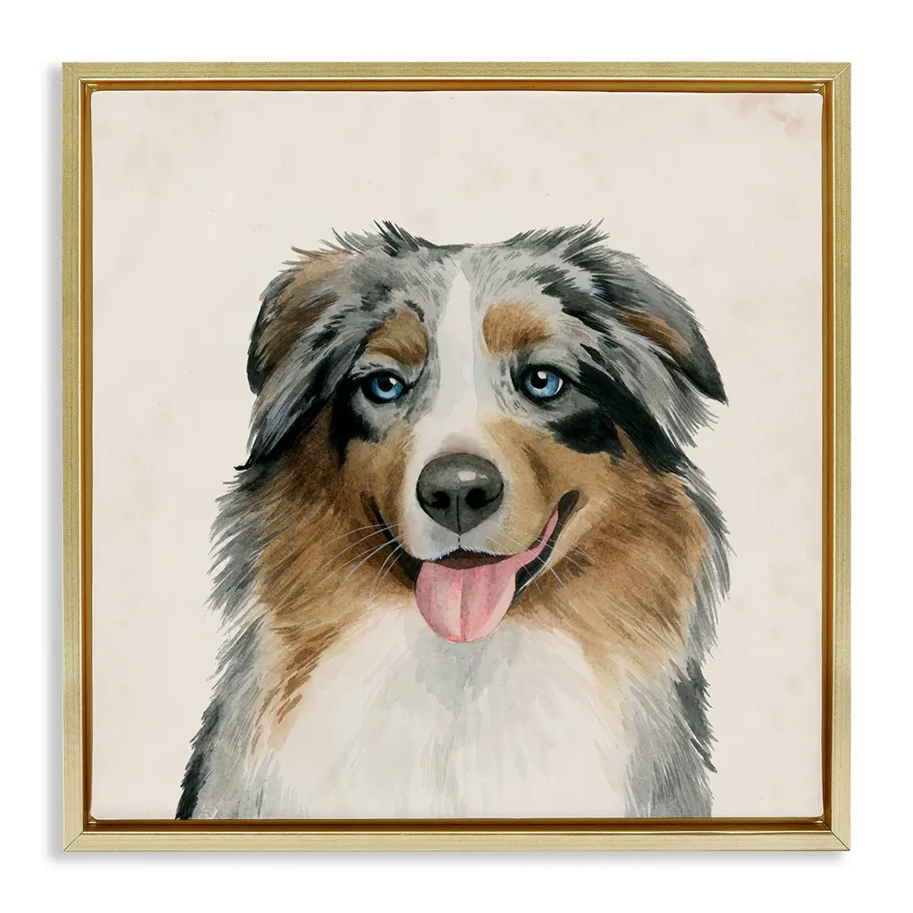 Elevate your home or office to the next level with Stupell Framed Floating Canvas Wall Art. Our premium hand-stretched canvas is mounted securely into a sturdy lightweight frame. The museum-style gap between the wrapped canvas and the box frame gives the illusion of floating artwork. Stupell Wall Art is made in the USA.Features: Dimensions: 18 x 1.7 x 18 Frame, 17 x 1.5 x 17 Canvas ArtFloating Frame Canvas Products are available in sizes 18"x18" and 25"x25". All Floating Frame Canvas Products have a 1.7" Depth.Wall Art is Ready to Hang with Hardware Free Hanging. No Installation required. For Easy Set Up Lean or Layer Artwork on Shelf or Against Wall. Artwork is Permently Fixed into the Frame.Our elevated 1.7" Thick Floating Frame is the perfect complement to our canvas style Wall Art. We use only the highest quality inks in house with industry leading printing solutions. Canvas is hand stretched over a durable wood foundation and then mounted securly into a Modern Box Frame. Made in the USA.Artwork Relates To: Animal, Pet, Dog, Portrait, Casual, MinimalDesign by Grace Popp