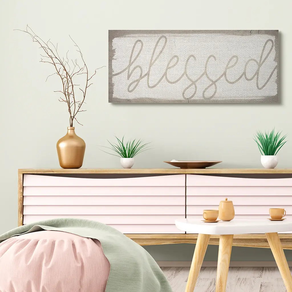 Stupell Charming Blessed Quote Wood Grain Pattern Canvas Wall Art - 17 X 40