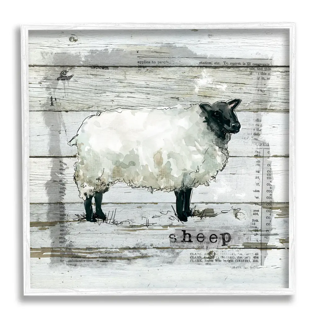 Stupell Charming Country Sheep Book Collage Rustic Pattern Framed Wall Art - Grey - 17 X 17 - Grey