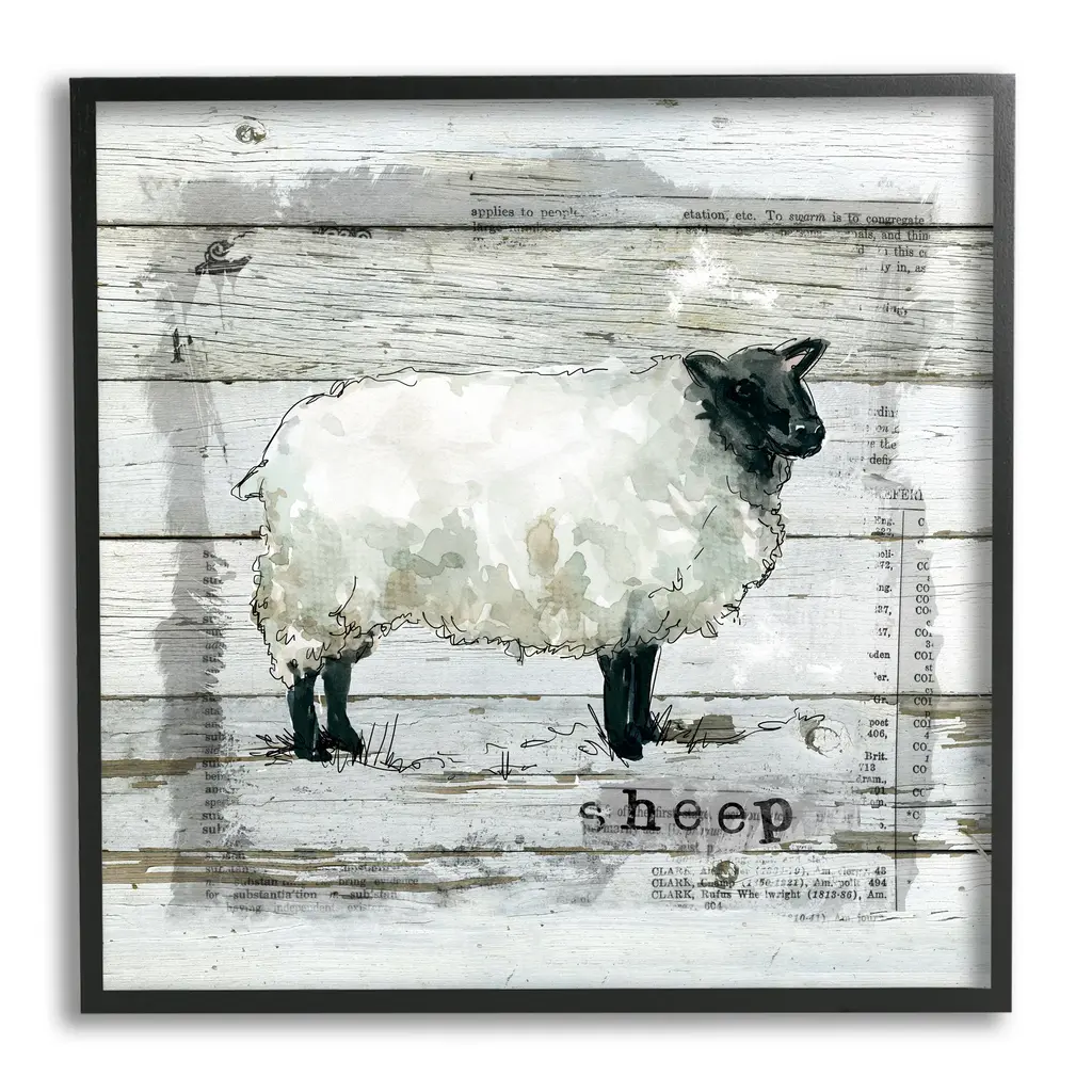 Stupell Charming Country Sheep Book Collage Rustic Pattern Framed Wall Art - Grey - 17 X 17 - White