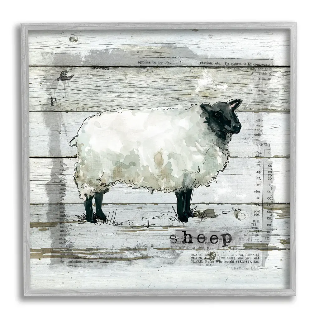Stupell Charming Country Sheep Book Collage Rustic Pattern Framed Wall Art - Grey - 24 X 24 - White