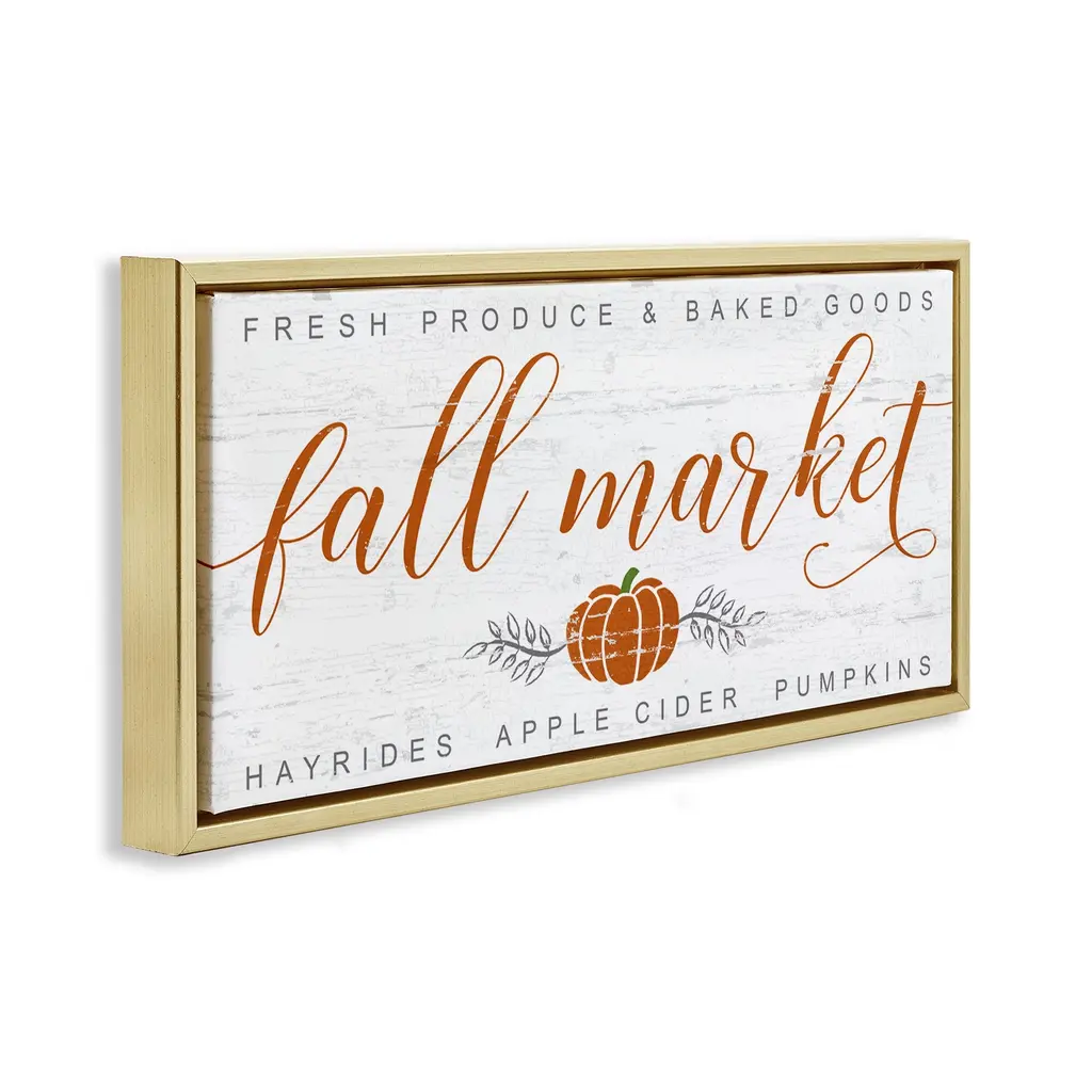 Stupell Charming Fall Market Sign Framed Floater Canvas Wall Art Design By Jessica Mundo - 25 X 11 - Gold