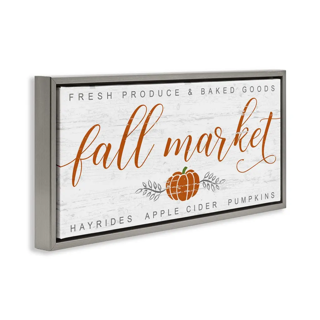 Stupell Charming Fall Market Sign Framed Floater Canvas Wall Art Design By Jessica Mundo - 25 X 11 - Grey