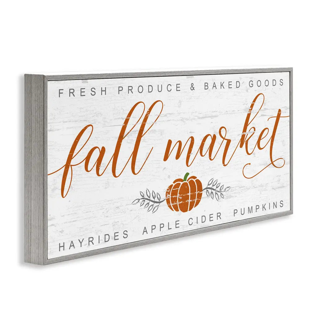 Stupell Charming Fall Market Sign Framed Giclee Art Design By Jessica Mundo - 24 X 10 - Grey