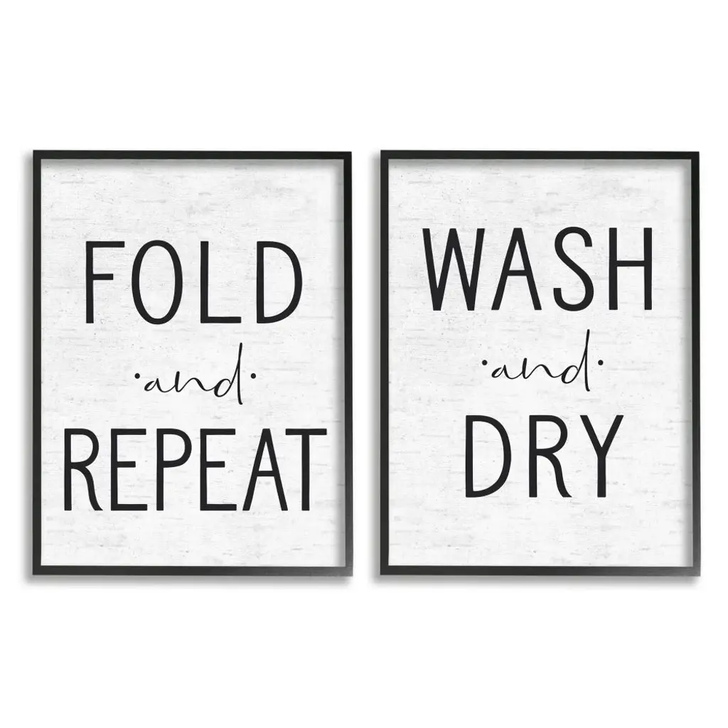 Stupell Charming Laundry Fold Repeat Wash Dry Sign, 2Pc Multi Piece Framed Wall Art Set - White - 16 X 20 - Black