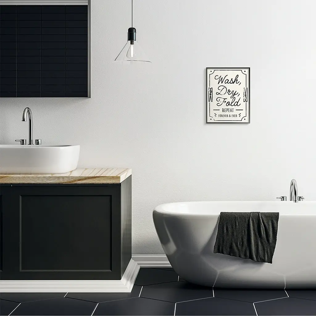 Stupell Charming Retro Laundry Wash Dry Fold Repeat Framed Wall Art - 11 X 14 - Black