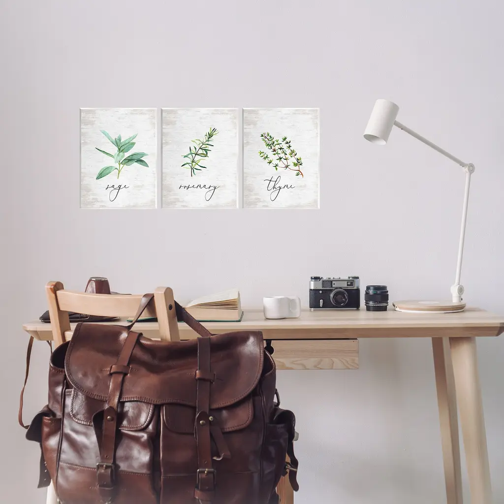 Fill any space with Stupell Wall Art Sets. Our wall plaques start as high-quality lithograph prints mounted on durable 0.5-inch thick MDF wood. Each piece is hand finished and comes with a fresh layer of white foil on the sides to give it a crisp, clean look. Plaques arrive ready to hang without installation and come with removable plastic corners to keep them from damage in transit. Stupell Wall Art is made in the USA.Features: Dimensions: 3 Piece Set, Each Panel is 11 x 0.5 x 14 InchesWall Art is Ready to Hang with Hardware Free Hanging. No installation required. For Easy Set Up Lean or Layer Artwork on Shelf or Against Wall.All of our wall plaques start off as high quality lithograph prints that are then mounted on durable 0.5 inch thick MDF wood. Each piece is hand finished and comes with a fresh layer of foil on the sides to give it a crisp clean look. Made In USA.Artwork Relates To: Leaf, Plant, Herbs, Kitchen, Country, Farmhouse, RusticDesign by Lettered and Lined