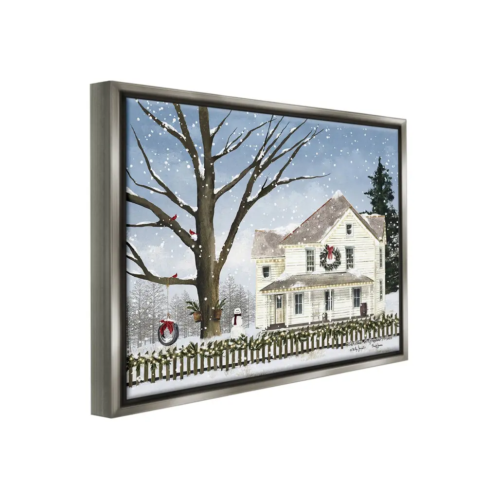 Elevate your home or office to the next level with Stupell Framed Floating Canvas Wall Art. Our premium hand-stretched canvas is mounted securely into a sturdy lightweight frame. The museum-style gap between the wrapped canvas and the box frame gives the illusion of floating artwork. Stupell Wall Art is made in the USA.Features: Dimensions: 21 x 1.7 x 17 Frame, 20 x 1.5 x 16 Canvas ArtFloating Frame Canvas Products are available in sizes 21"x17" and 31"x25". All Floating Frame Canvas Products have a 1.7" Depth.Wall Art is Ready to Hang with Hardware Free Hanging. No Installation required. For Easy Set Up Lean or Layer Artwork on Shelf or Against Wall. Artwork is Permently Fixed into the Frame.Our elevated 1.7" Thick Floating Frame is the perfect complement to our canvas style Wall Art. We use only the highest quality inks in house with industry leading printing solutions. Canvas is hand stretched over a durable wood foundation and then mounted securly into a Modern Box Frame. Made in the USA.Artwork Relates To: Cottage, House, Snow, Snowman, Winter, Fence, Tree, Neighborhood, SceneryDesign by Billy Jacobs