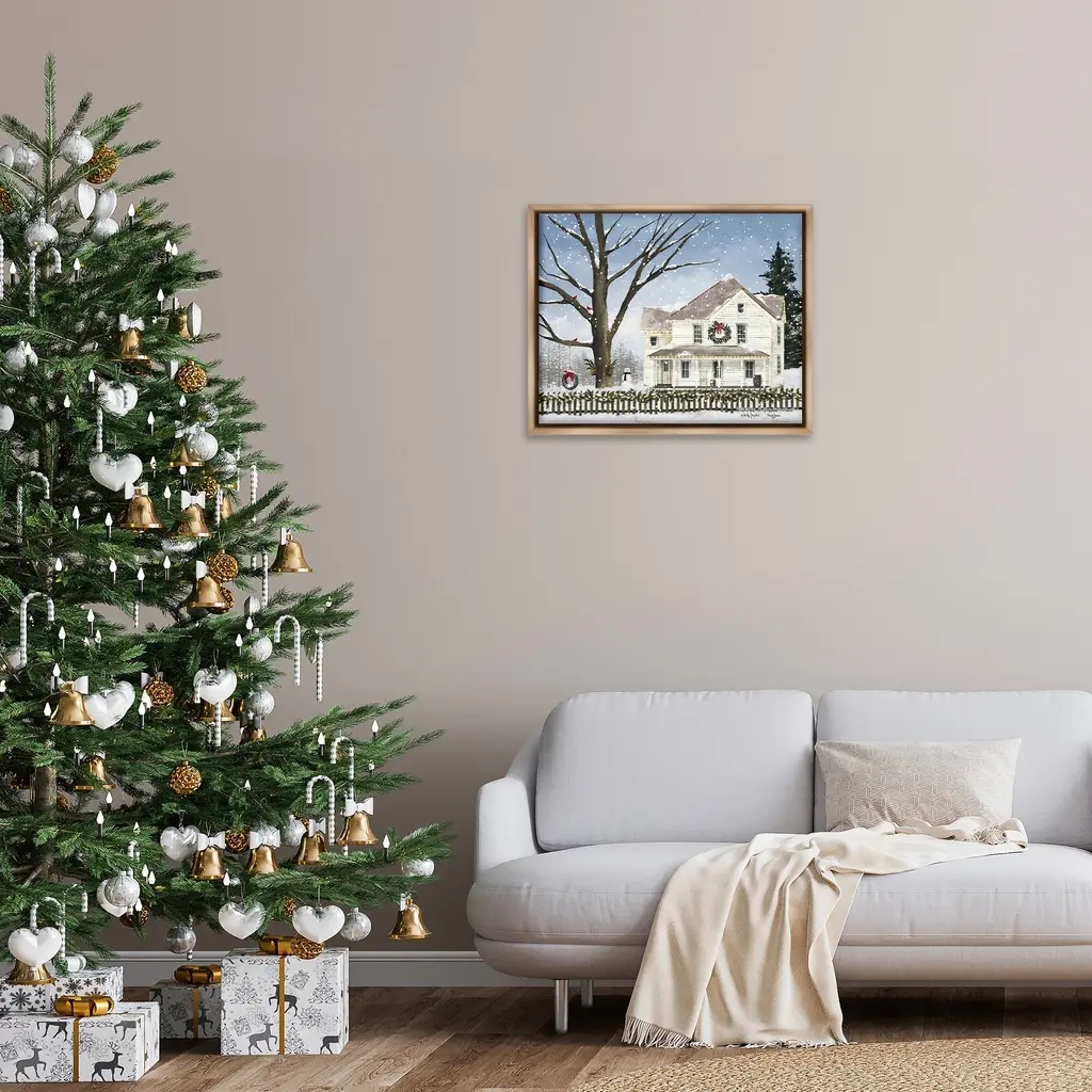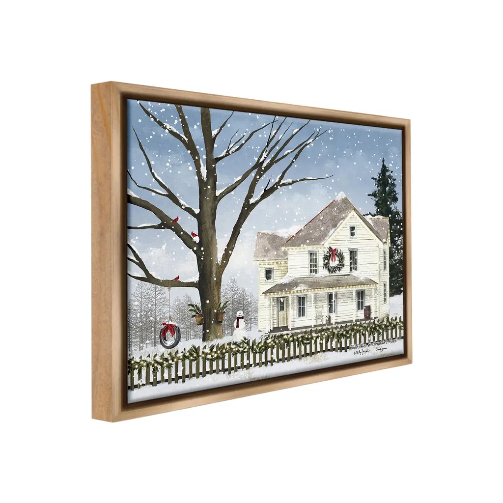 Elevate your home or office to the next level with Stupell Framed Floating Canvas Wall Art. Our premium hand-stretched canvas is mounted securely into a sturdy lightweight frame. The museum-style gap between the wrapped canvas and the box frame gives the illusion of floating artwork. Stupell Wall Art is made in the USA.Features: Dimensions: 21 x 1.7 x 17 Frame, 20 x 1.5 x 16 Canvas ArtFloating Frame Canvas Products are available in sizes 21"x17" and 31"x25". All Floating Frame Canvas Products have a 1.7" Depth.Wall Art is Ready to Hang with Hardware Free Hanging. No Installation required. For Easy Set Up Lean or Layer Artwork on Shelf or Against Wall. Artwork is Permently Fixed into the Frame.Our elevated 1.7" Thick Floating Frame is the perfect complement to our canvas style Wall Art. We use only the highest quality inks in house with industry leading printing solutions. Canvas is hand stretched over a durable wood foundation and then mounted securly into a Modern Box Frame. Made in the USA.Artwork Relates To: Cottage, House, Snow, Snowman, Winter, Fence, Tree, Neighborhood, SceneryDesign by Billy Jacobs