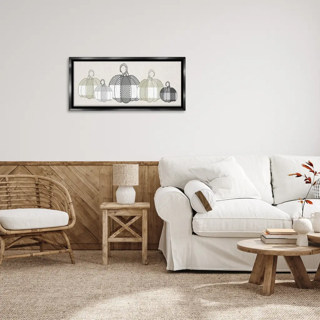 Elevate your home or office to the next level with Stupell Framed Floating Canvas Wall Art. Our premium hand-stretched canvas is mounted securely into a sturdy lightweight frame. The museum-style gap between the wrapped canvas and the box frame gives the illusion of floating artwork. Stupell Wall Art is made in the USA.Features: Dimensions: 25 x 1.7 x 11 Frame, 24 x 1.5 x 10 Canvas ArtFloating Frame Canvas Products are available in sizes 25"x11" and 31"x14". All Floating Frame Canvas Products have a 1.7" Depth.Wall Art is Ready to Hang with Hardware Free Hanging. No Installation required. For Easy Set Up Lean or Layer Artwork on Shelf or Against Wall. Artwork is Permently Fixed into the Frame.Our elevated 1.7" Thick Floating Frame is the perfect complement to our canvas style Wall Art. We use only the highest quality inks in house with industry leading printing solutions. Canvas is hand stretched over a durable wood foundation and then mounted securly into a Modern Box Frame. Made in the USA.Artwork Relates To: Seasonal, Fall, Autumn, Pumpkin, Pattern, Plaid, Tartan, PhraseDesign by Daphne Polselli