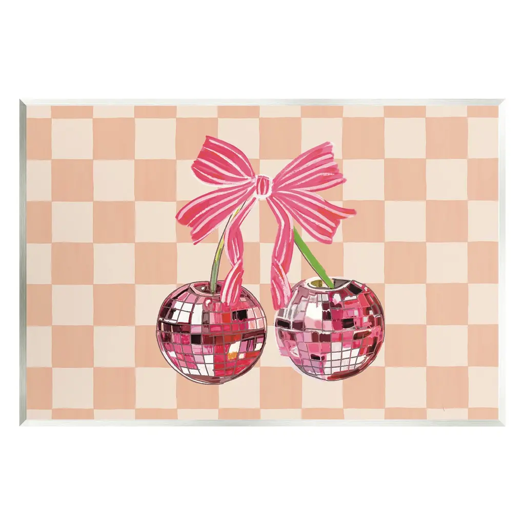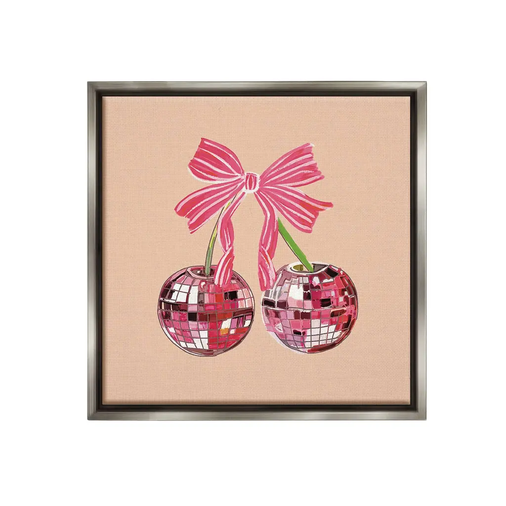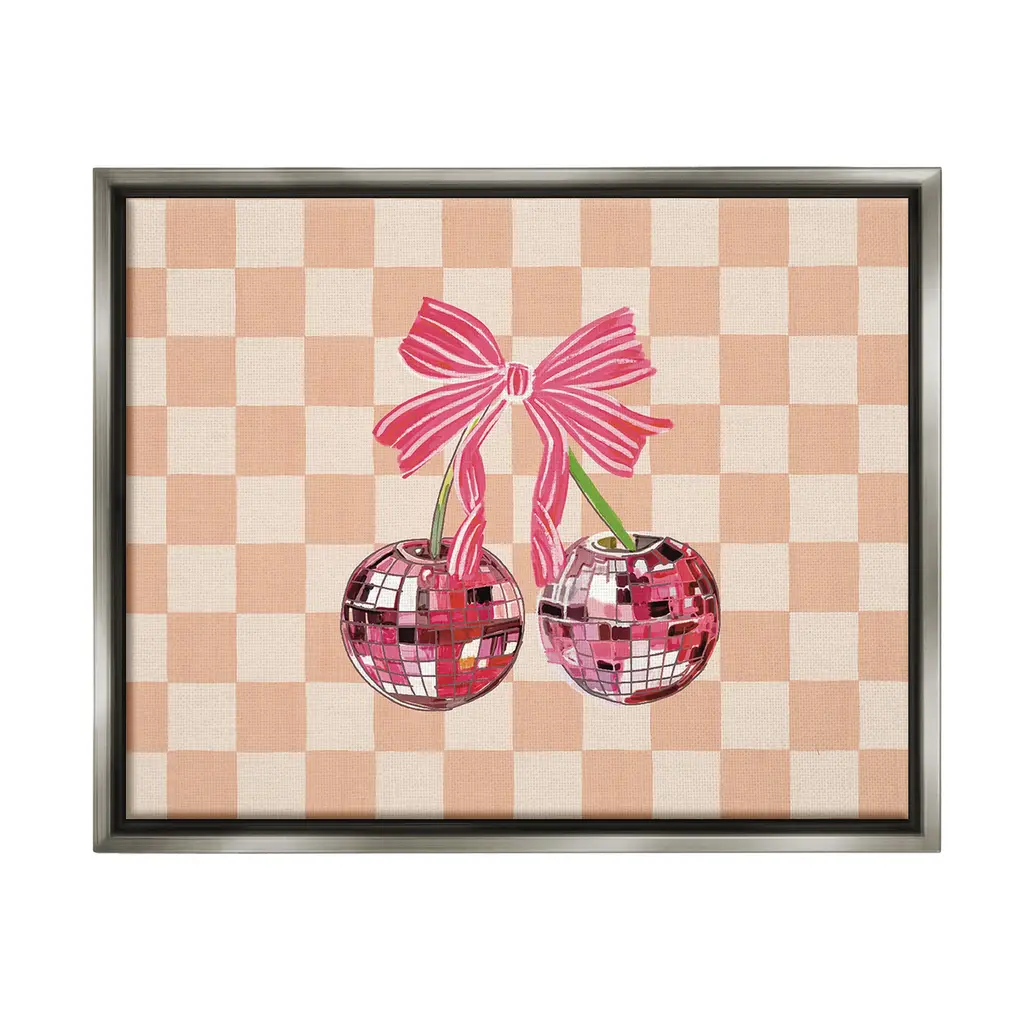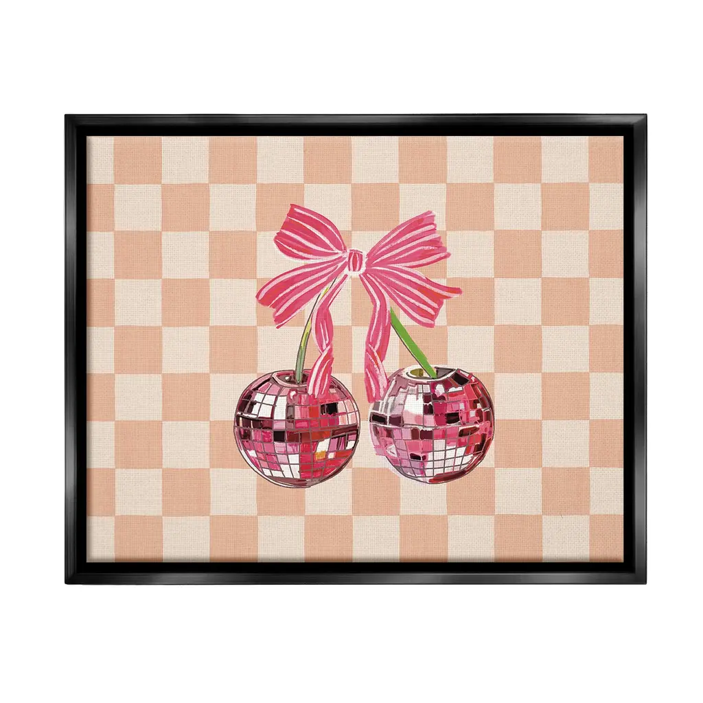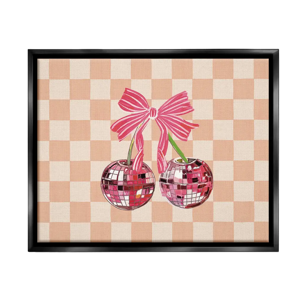 Elevate your home or office to the next level with Stupell Framed Floating Canvas Wall Art. Our premium hand-stretched canvas is mounted securely into a sturdy lightweight frame. The museum-style gap between the wrapped canvas and the box frame gives the illusion of floating artwork. Stupell Wall Art is made in the USA.Features: Dimensions: 21 x 1.7 x 17 Frame, 20 x 1.5 x 16 Canvas ArtFloating Frame Canvas Products are available in sizes 21"x17" and 31"x25". All Floating Frame Canvas Products have a 1.7" Depth.Wall Art is Ready to Hang with Hardware Free Hanging. No Installation required. For Easy Set Up Lean or Layer Artwork on Shelf or Against Wall. Artwork is Permently Fixed into the Frame.Our elevated 1.7" Thick Floating Frame is the perfect complement to our canvas style Wall Art. We use only the highest quality inks in house with industry leading printing solutions. Canvas is hand stretched over a durable wood foundation and then mounted securly into a Modern Box Frame. Made in the USA.Artwork Relates To: Dance, Music, Disco, Pattern, Fruit, Cherry, Geometric, GlamDesign by Amelia Noyes