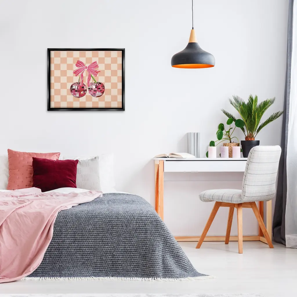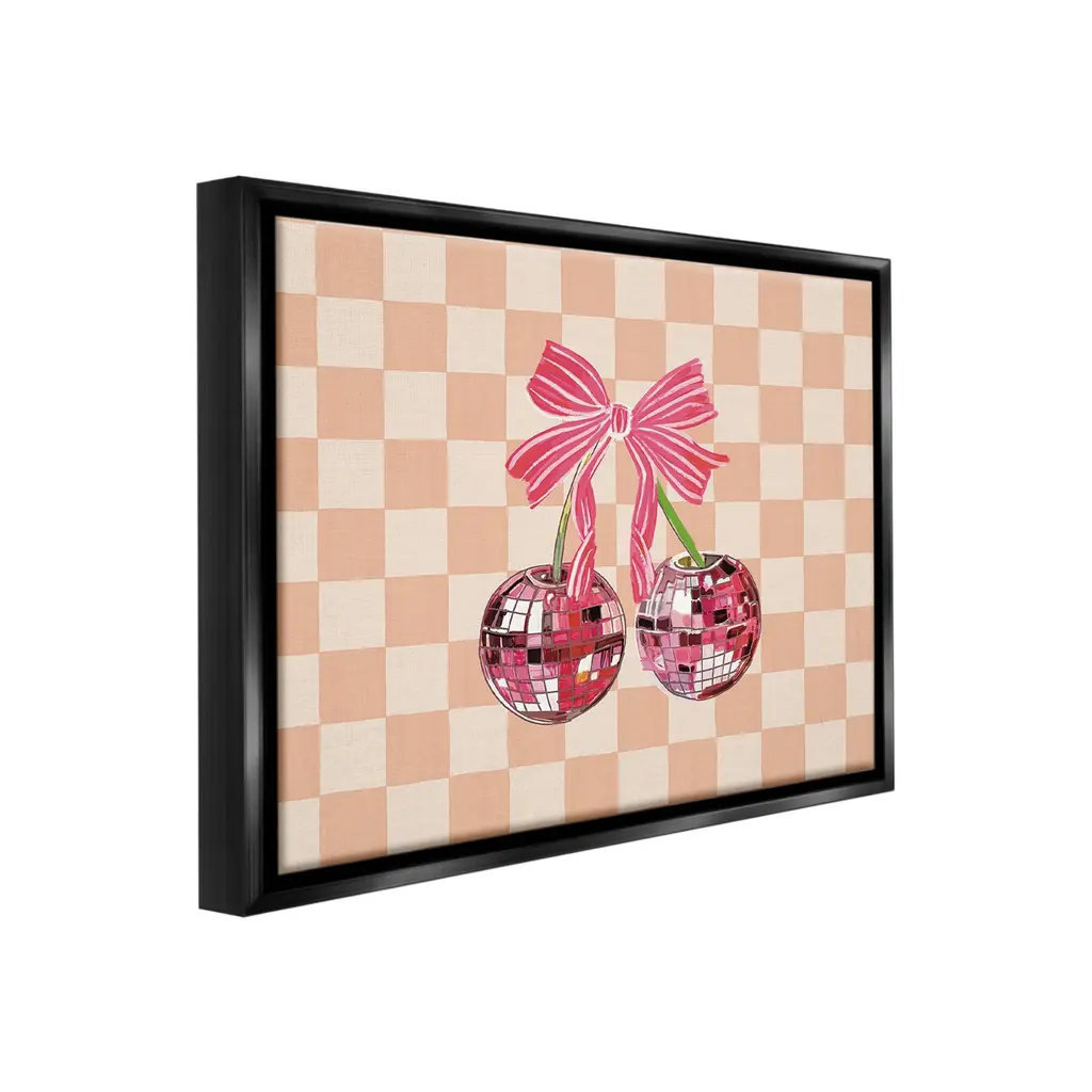 Elevate your home or office to the next level with Stupell Framed Floating Canvas Wall Art. Our premium hand-stretched canvas is mounted securely into a sturdy lightweight frame. The museum-style gap between the wrapped canvas and the box frame gives the illusion of floating artwork. Stupell Wall Art is made in the USA.Features: Dimensions: 21 x 1.7 x 17 Frame, 20 x 1.5 x 16 Canvas ArtFloating Frame Canvas Products are available in sizes 21"x17" and 31"x25". All Floating Frame Canvas Products have a 1.7" Depth.Wall Art is Ready to Hang with Hardware Free Hanging. No Installation required. For Easy Set Up Lean or Layer Artwork on Shelf or Against Wall. Artwork is Permently Fixed into the Frame.Our elevated 1.7" Thick Floating Frame is the perfect complement to our canvas style Wall Art. We use only the highest quality inks in house with industry leading printing solutions. Canvas is hand stretched over a durable wood foundation and then mounted securly into a Modern Box Frame. Made in the USA.Artwork Relates To: Dance, Music, Disco, Pattern, Fruit, Cherry, Geometric, GlamDesign by Amelia Noyes
