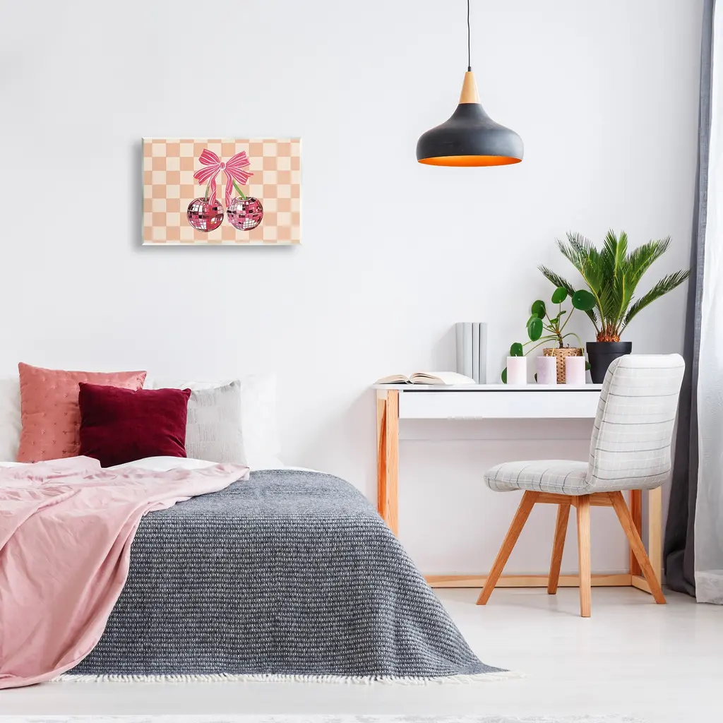 Our wall plaques start as high-quality lithograph prints mounted on durable 0.5-inch thick MDF wood. Each piece is hand finished and comes with a fresh layer of white foil on the sides to give it a crisp, clean look. Plaques arrive ready to hang without installation and come with removable plastic corners to keep them from damage in transit. Stupell Wall Art is made in the USA.Features: Dimensions: 15 x 0.5 x 10 InchesWall Plaque Product Sizes Include 15"x10" and 19"x13". All wall plaque products have a 0.5" Depth. Wall Art is Ready to Hang with Hardware Free Hanging. No installation required. For Easy Set Up Lean or Layer Artwork on Shelf or Against Wall.All of our wall plaques start off as high quality lithograph prints that are then mounted on durable 0.5 inch thick MDF wood. Each piece is hand finished and comes with a fresh layer of foil on the sides to give it a crisp clean look. Made In USA.Artwork Relates To: Dance, Music, Disco, Pattern, Fruit, Cherry, Geometric, GlamDesign by Amelia Noyes