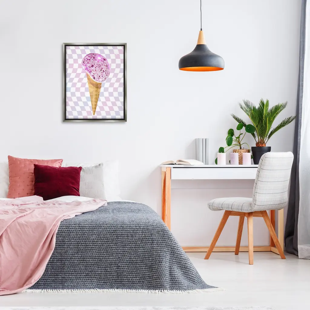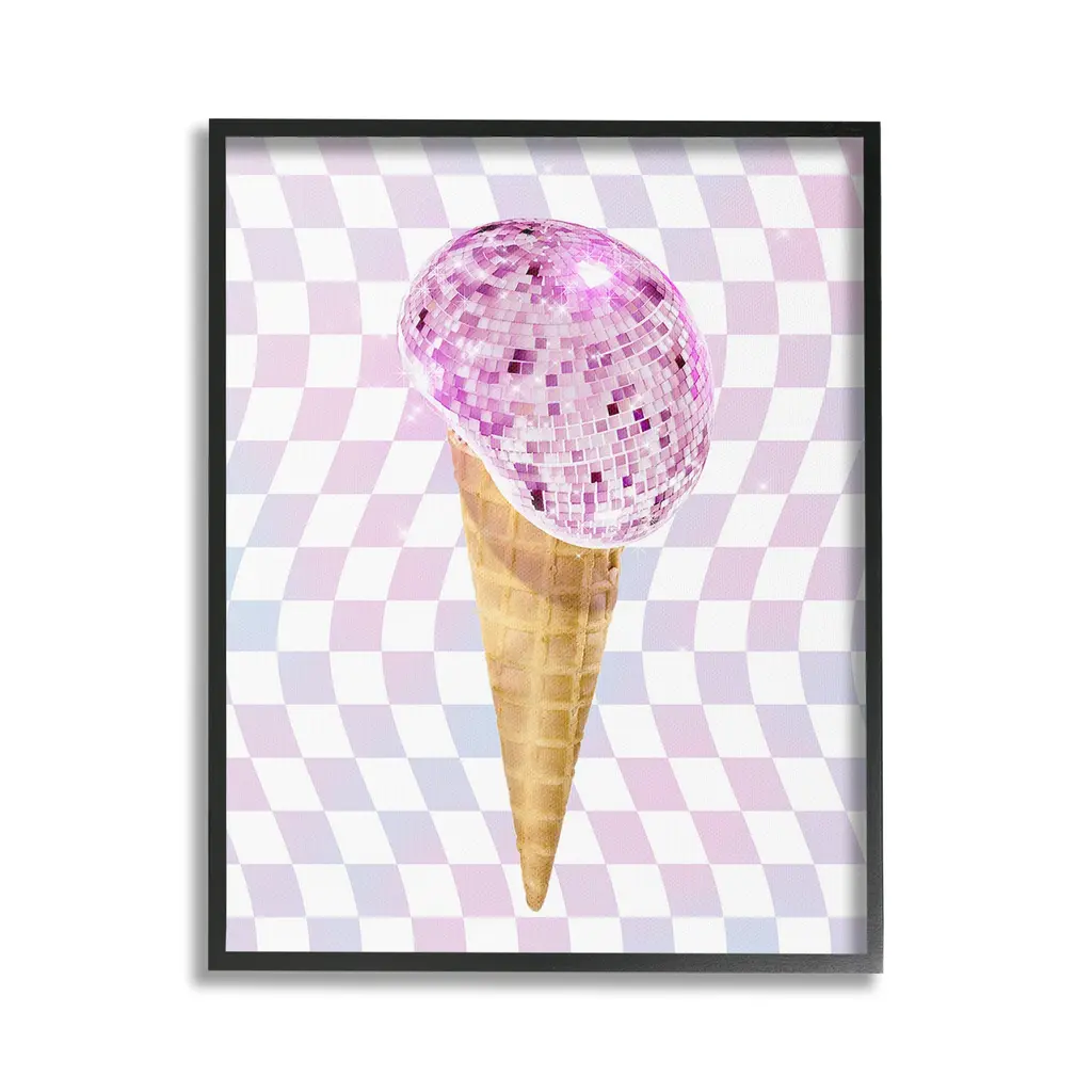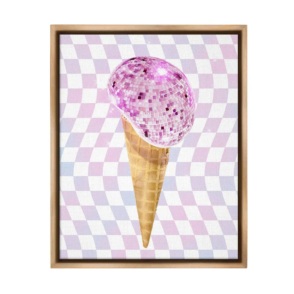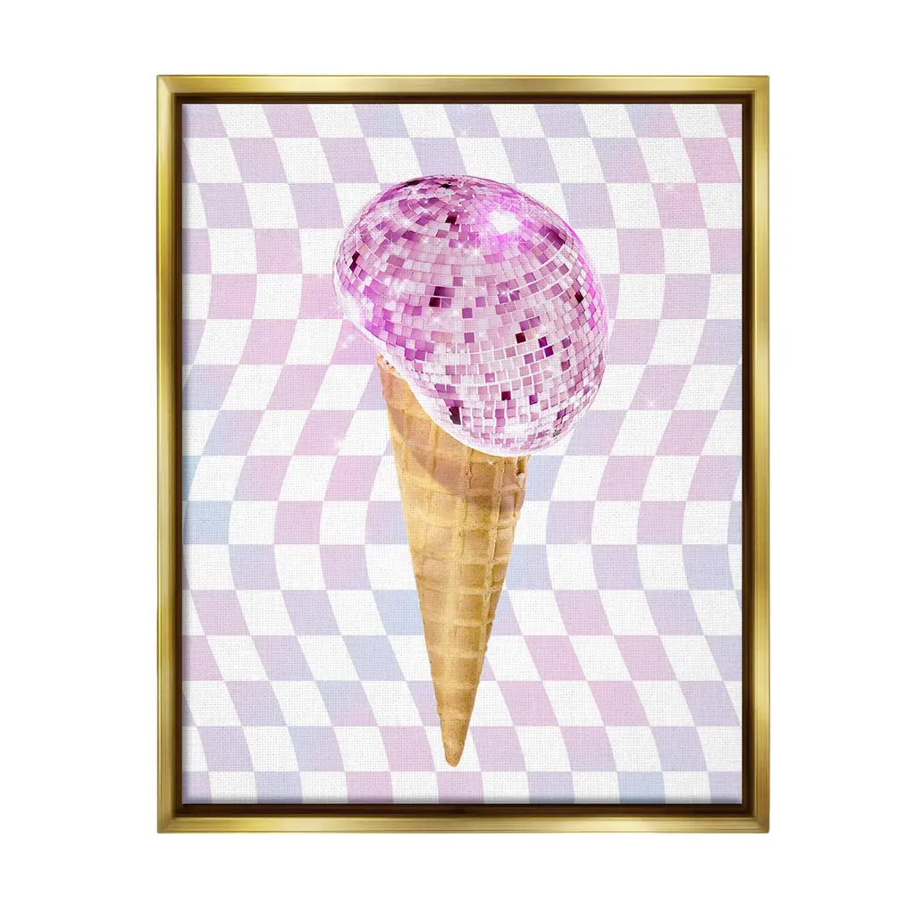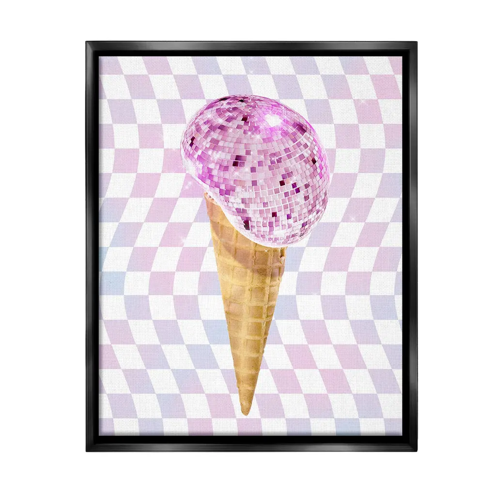 Elevate your home or office to the next level with Stupell Framed Floating Canvas Wall Art. Our premium hand-stretched canvas is mounted securely into a sturdy lightweight frame. The museum-style gap between the wrapped canvas and the box frame gives the illusion of floating artwork. Stupell Wall Art is made in the USA.Features: Dimensions: 17 x 1.7 x 21 Frame, 16 x 1.5 x 20 Canvas ArtFloating Frame Canvas Products are available in sizes 17"x21" and 25"x31". All Floating Frame Canvas Products have a 1.7" Depth.Wall Art is Ready to Hang with Hardware Free Hanging. No Installation required. For Easy Set Up Lean or Layer Artwork on Shelf or Against Wall. Artwork is Permently Fixed into the Frame.Our elevated 1.7" Thick Floating Frame is the perfect complement to our canvas style Wall Art. We use only the highest quality inks in house with industry leading printing solutions. Canvas is hand stretched over a durable wood foundation and then mounted securly into a Modern Box Frame. Made in the USA.Artwork Relates To: Dance, Music, Disco, Pattern, Abstract, Shape, Modern, Glam, Dessert, Ice CreamDesign by Ziwei Li