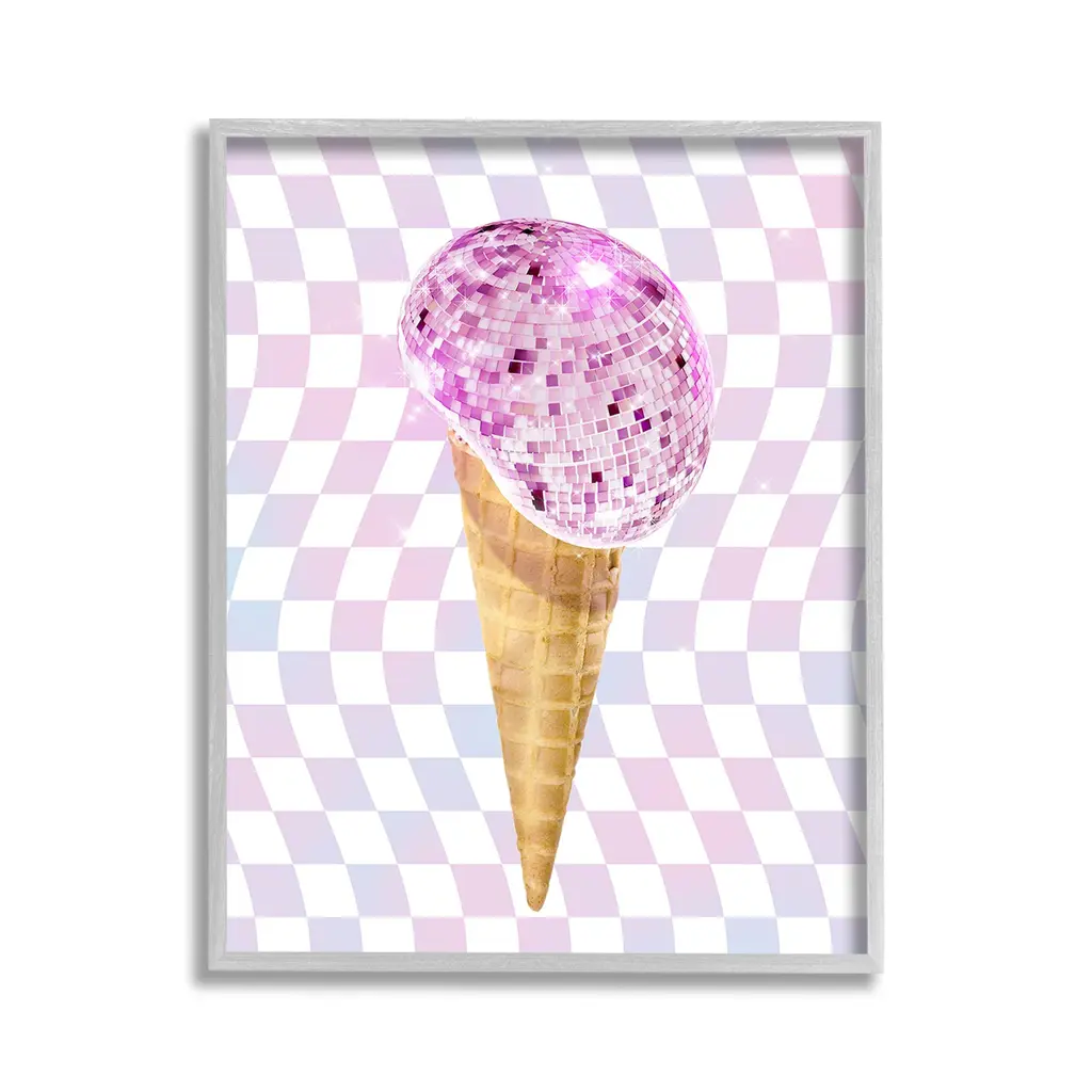 Add dimension to any room with our textured Framed Giclee Artwork. Our framed artwork is securely mounted into a 1.5-inch thick wood grain frame and ready to hang. Frames are available in three alluring styles: black, gray farmhouse and white. In addition, you should check out our oversized options if you want a statement piece. Stupell Wall Art is made in the USA.Features: Dimensions: 11 x 1.5 x 14 FramedFramed Giclee Products are available in the sizes 11"x14", 16"x20" or 24"x30". All Framed Giclee Products have a 1.5" Depth. Wall Art is Ready to Hang with Hardware Free Hanging. No installation required. For Easy Set Up Lean or Layer Artwork on Shelf or Against Wall.Our giclée prints are carefully mounted on a durable MDF backing, and then perfectly finished in a 1.5 inch thick woodgrain frame. Mounted frame colors include black, gray farmhouse and white. Made In USA.Artwork Relates To: Dance, Music, Disco, Pattern, Abstract, Shape, Modern, Glam, Dessert, Ice CreamDesign by Ziwei Li