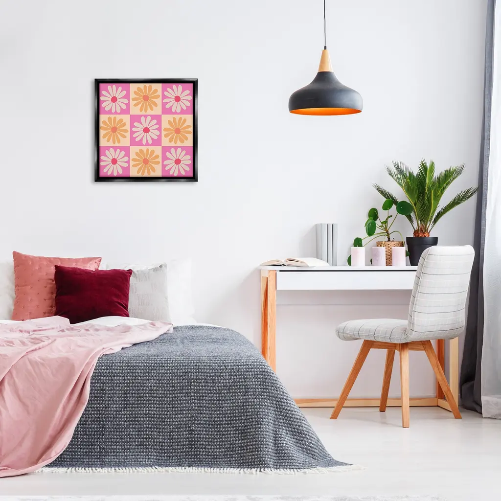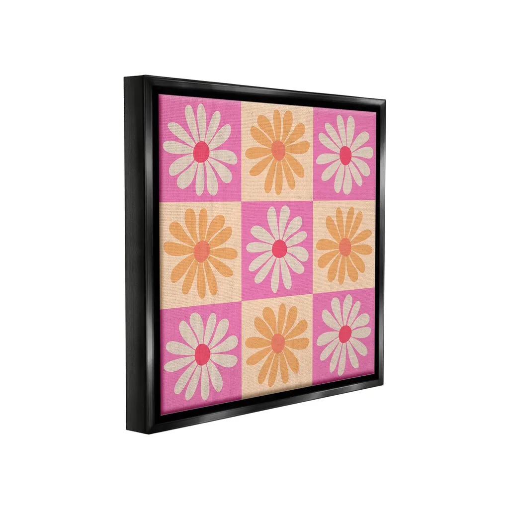 Elevate your home or office to the next level with Stupell Framed Floating Canvas Wall Art. Our premium hand-stretched canvas is mounted securely into a sturdy lightweight frame. The museum-style gap between the wrapped canvas and the box frame gives the illusion of floating artwork. Stupell Wall Art is made in the USA.Features: Dimensions: 18 x 1.7 x 18 Frame, 17 x 1.5 x 17 Canvas ArtFloating Frame Canvas Products are available in sizes 18"x18" and 25"x25". All Floating Frame Canvas Products have a 1.7" Depth.Wall Art is Ready to Hang with Hardware Free Hanging. No Installation required. For Easy Set Up Lean or Layer Artwork on Shelf or Against Wall. Artwork is Permently Fixed into the Frame.Our elevated 1.7" Thick Floating Frame is the perfect complement to our canvas style Wall Art. We use only the highest quality inks in house with industry leading printing solutions. Canvas is hand stretched over a durable wood foundation and then mounted securly into a Modern Box Frame. Made in the USA.Artwork Relates To: Daisy, Flower, Plant, Pattern, Floral, CheckeredDesign by Carrie Cantwell