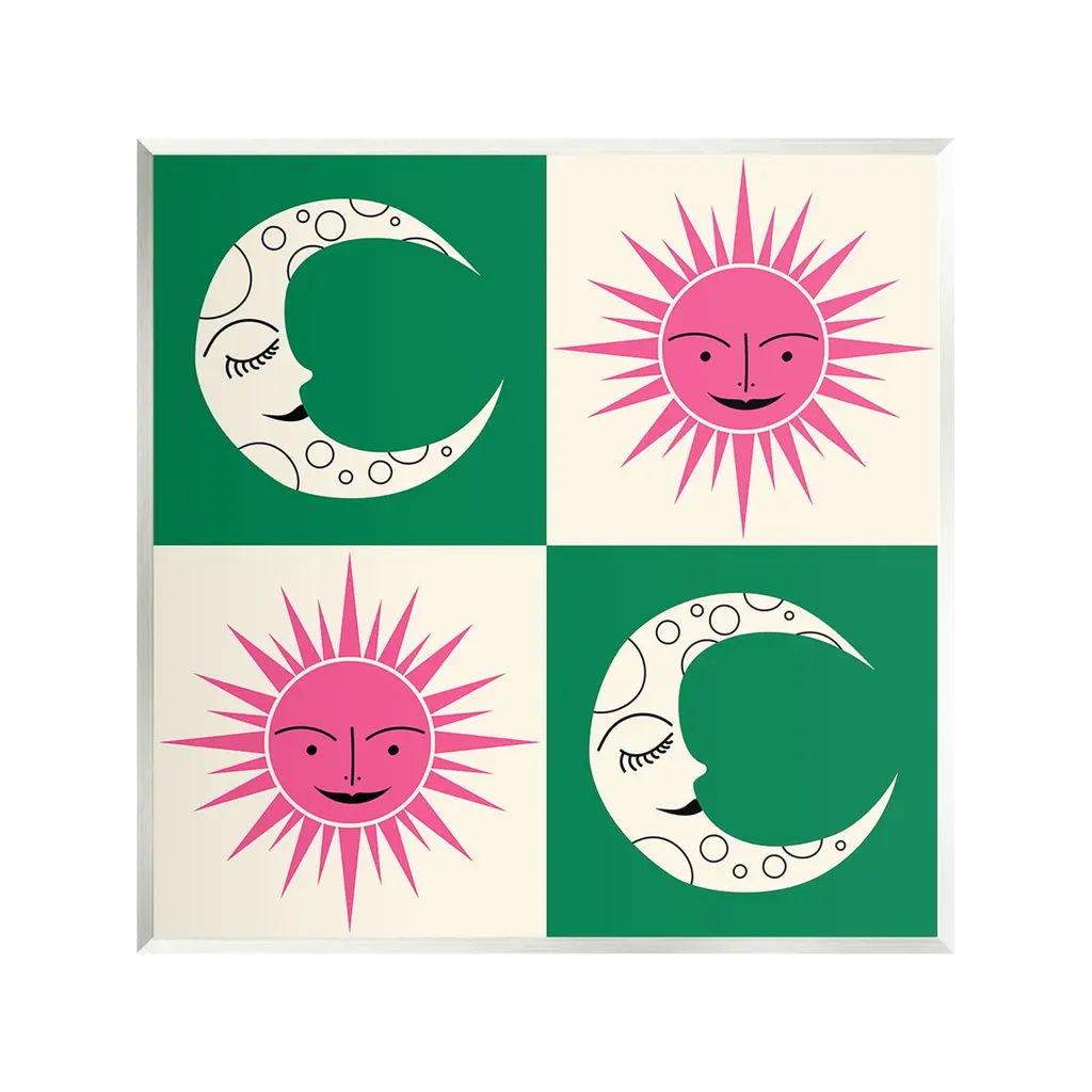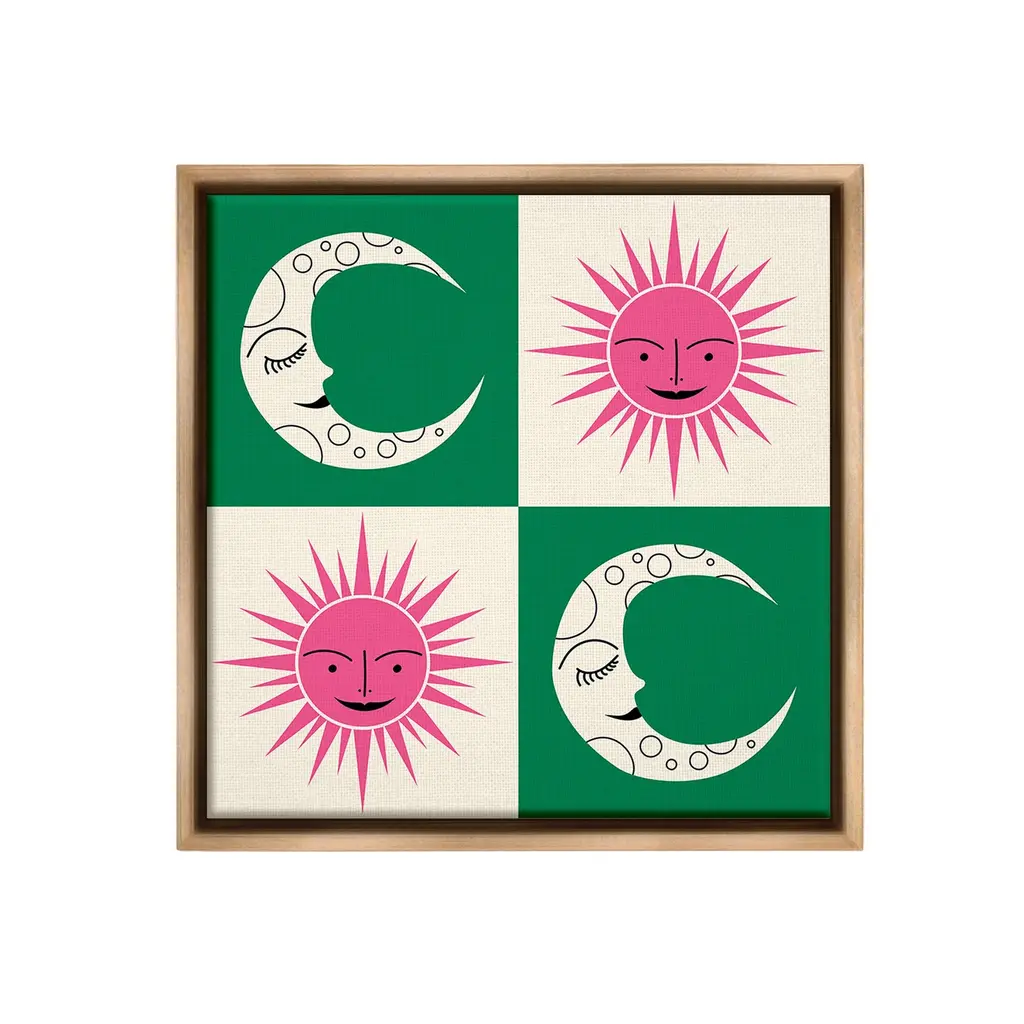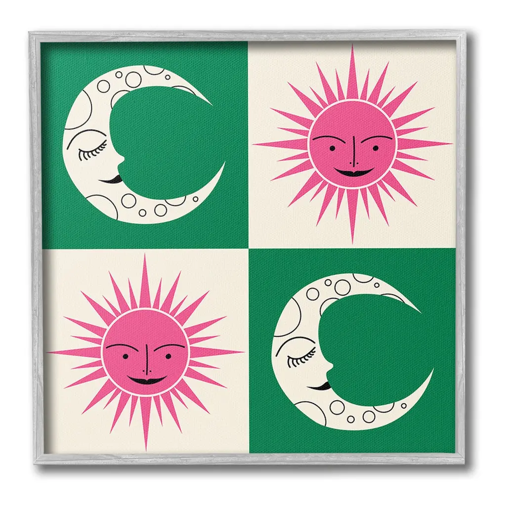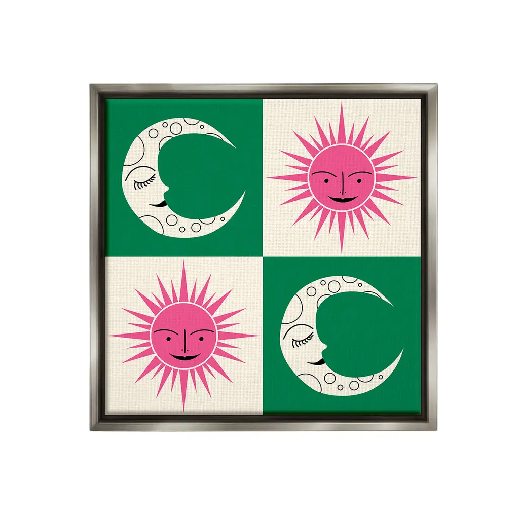 Elevate your home or office to the next level with Stupell Framed Floating Canvas Wall Art. Our premium hand-stretched canvas is mounted securely into a sturdy lightweight frame. The museum-style gap between the wrapped canvas and the box frame gives the illusion of floating artwork. Stupell Wall Art is made in the USA.Features: Dimensions: 18 x 1.7 x 18 Frame, 17 x 1.5 x 17 Canvas ArtFloating Frame Canvas Products are available in sizes 18"x18" and 25"x25". All Floating Frame Canvas Products have a 1.7" Depth.Wall Art is Ready to Hang with Hardware Free Hanging. No Installation required. For Easy Set Up Lean or Layer Artwork on Shelf or Against Wall. Artwork is Permently Fixed into the Frame.Our elevated 1.7" Thick Floating Frame is the perfect complement to our canvas style Wall Art. We use only the highest quality inks in house with industry leading printing solutions. Canvas is hand stretched over a durable wood foundation and then mounted securly into a Modern Box Frame. Made in the USA.Artwork Relates To: Astral, Celestial, Sun, Moon, Pattern, Checkered, Boho, ModernDesign by Carrie Cantwell