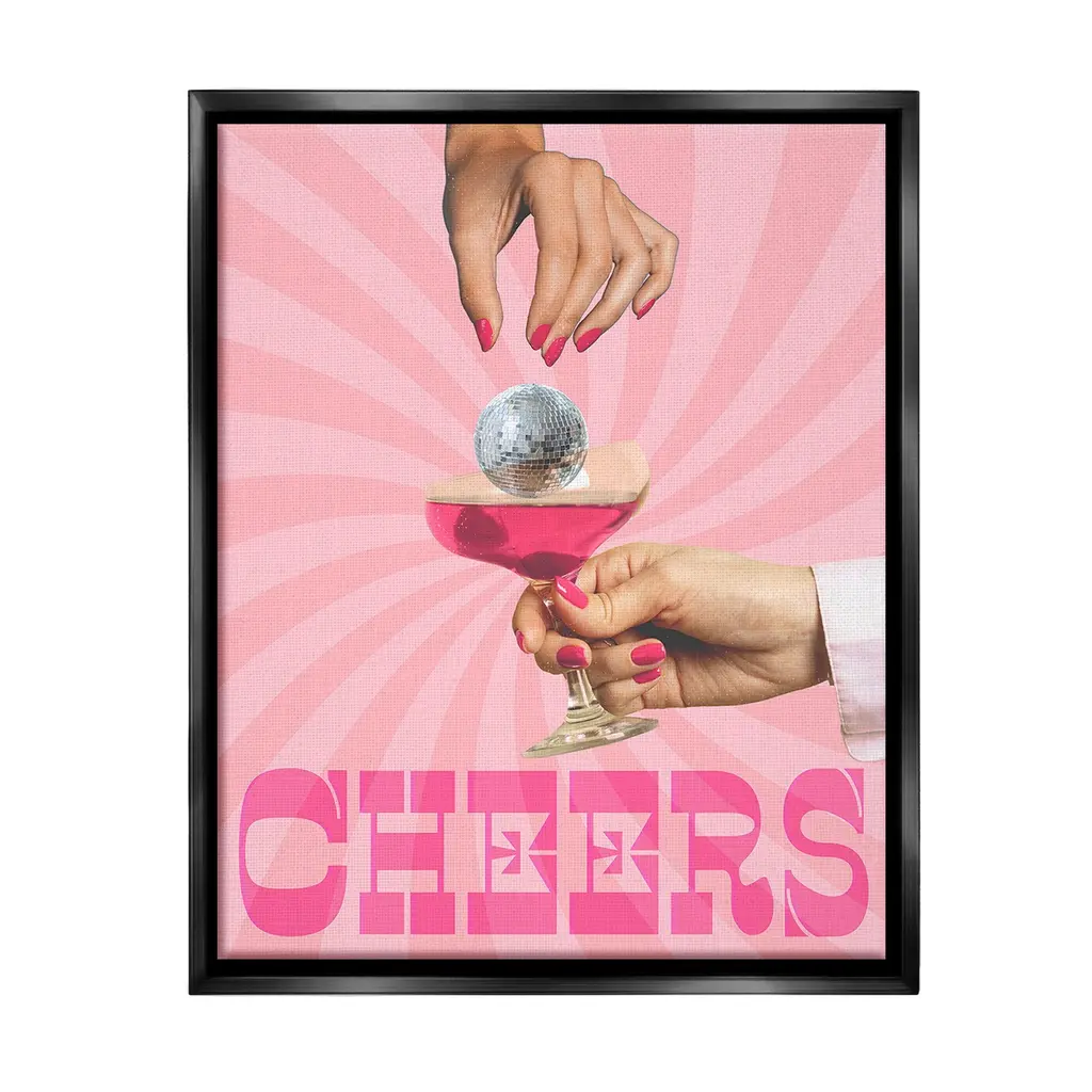 Elevate your home or office to the next level with Stupell Framed Floating Canvas Wall Art. Our premium hand-stretched canvas is mounted securely into a sturdy lightweight frame. The museum-style gap between the wrapped canvas and the box frame gives the illusion of floating artwork. Stupell Wall Art is made in the USA.Features: Dimensions: 17 x 1.7 x 21 Frame, 16 x 1.5 x 20 Canvas ArtFloating Frame Canvas Products are available in sizes 17"x21" and 25"x31". All Floating Frame Canvas Products have a 1.7" Depth.Wall Art is Ready to Hang with Hardware Free Hanging. No Installation required. For Easy Set Up Lean or Layer Artwork on Shelf or Against Wall. Artwork is Permently Fixed into the Frame.Our elevated 1.7" Thick Floating Frame is the perfect complement to our canvas style Wall Art. We use only the highest quality inks in house with industry leading printing solutions. Canvas is hand stretched over a durable wood foundation and then mounted securly into a Modern Box Frame. Made in the USA.Artwork Relates To: Dance, Music, Disco, Pattern, Abstract, Shape, Modern, Glam, Person, Hand, Cocktail, Martini, CheersDesign by Lil' Rue