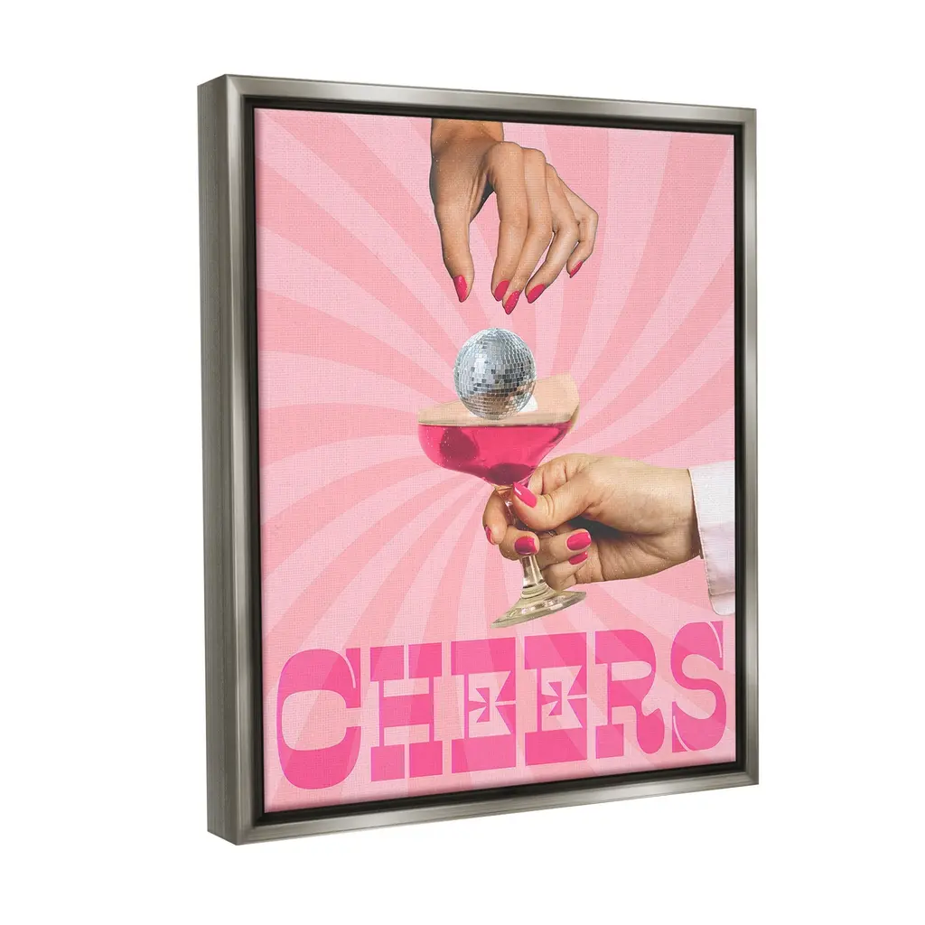 Elevate your home or office to the next level with Stupell Framed Floating Canvas Wall Art. Our premium hand-stretched canvas is mounted securely into a sturdy lightweight frame. The museum-style gap between the wrapped canvas and the box frame gives the illusion of floating artwork. Stupell Wall Art is made in the USA.Features: Dimensions: 17 x 1.7 x 21 Frame, 16 x 1.5 x 20 Canvas ArtFloating Frame Canvas Products are available in sizes 17"x21" and 25"x31". All Floating Frame Canvas Products have a 1.7" Depth.Wall Art is Ready to Hang with Hardware Free Hanging. No Installation required. For Easy Set Up Lean or Layer Artwork on Shelf or Against Wall. Artwork is Permently Fixed into the Frame.Our elevated 1.7" Thick Floating Frame is the perfect complement to our canvas style Wall Art. We use only the highest quality inks in house with industry leading printing solutions. Canvas is hand stretched over a durable wood foundation and then mounted securly into a Modern Box Frame. Made in the USA.Artwork Relates To: Dance, Music, Disco, Pattern, Abstract, Shape, Modern, Glam, Person, Hand, Cocktail, Martini, CheersDesign by Lil' Rue