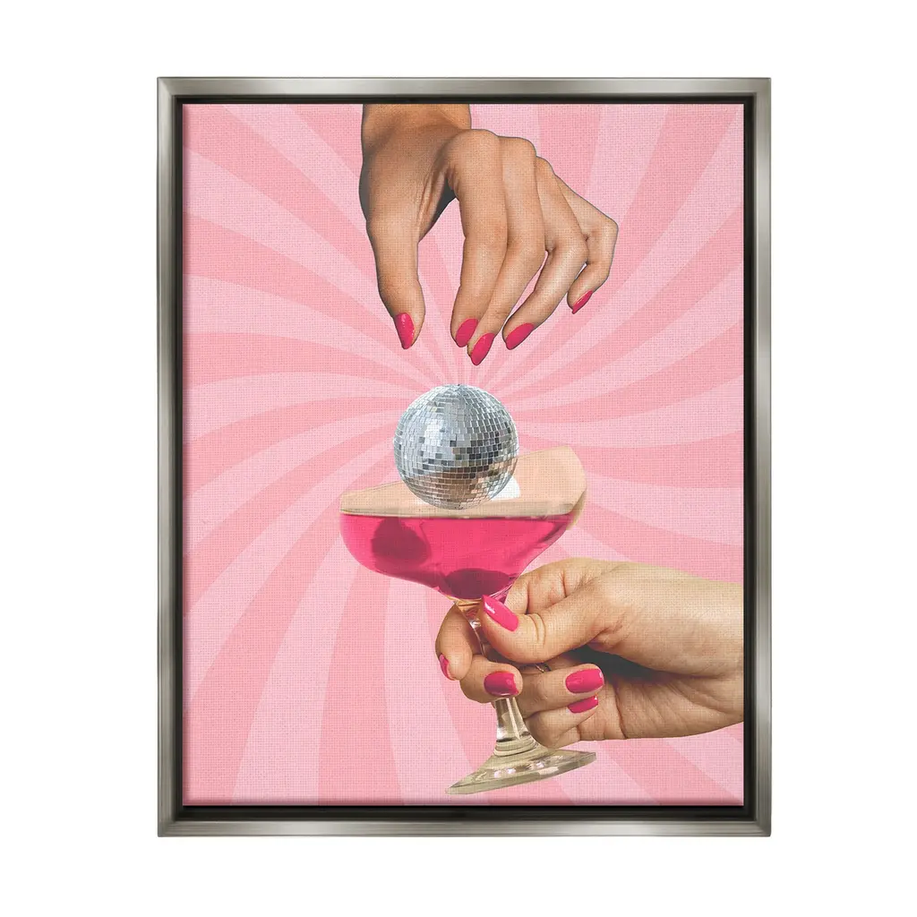 Add dimension to any room with our textured Framed Giclee Artwork. Our framed artwork is securely mounted into a 1.5-inch thick wood grain frame and ready to hang. Frames are available in three alluring styles: black, gray farmhouse and white. In addition, you should check out our oversized options if you want a statement piece. Stupell Wall Art is made in the USA.Features: Dimensions: 11 x 1.5 x 14 FramedFramed Giclee Products are available in the sizes 11"x14", 16"x20" or 24"x30". All Framed Giclee Products have a 1.5" Depth. Wall Art is Ready to Hang with Hardware Free Hanging. No installation required. For Easy Set Up Lean or Layer Artwork on Shelf or Against Wall.Our giclée prints are carefully mounted on a durable MDF backing, and then perfectly finished in a 1.5 inch thick woodgrain frame. Mounted frame colors include black, gray farmhouse and white. Made In USA.Artwork Relates To: Dance, Music, Disco, Pattern, Abstract, Shape, Modern, Glam, Person, Hand, Cocktail, Martini, CheersDesign by Lil' Rue
