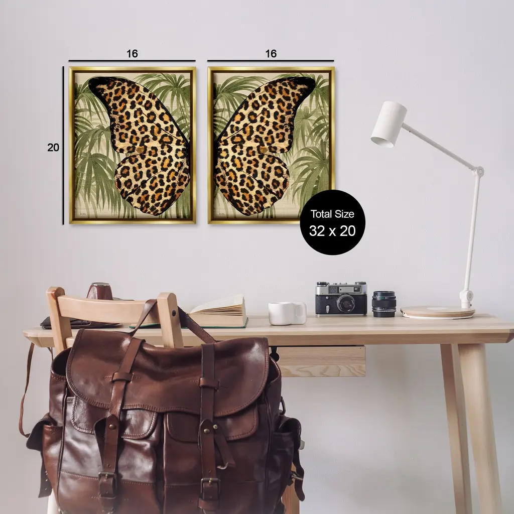Stupell Cheetah Butterfly Wings Framed Floater Canvas Wall Art Design By Amber Sterling (Set Of 2) - 17 X 21 - Gold