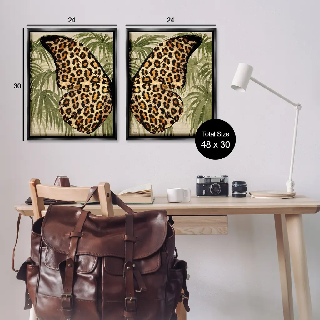 Stupell Cheetah Butterfly Wings Framed Floater Canvas Wall Art Design By Amber Sterling (Set Of 2) - 25 X 31 - Black