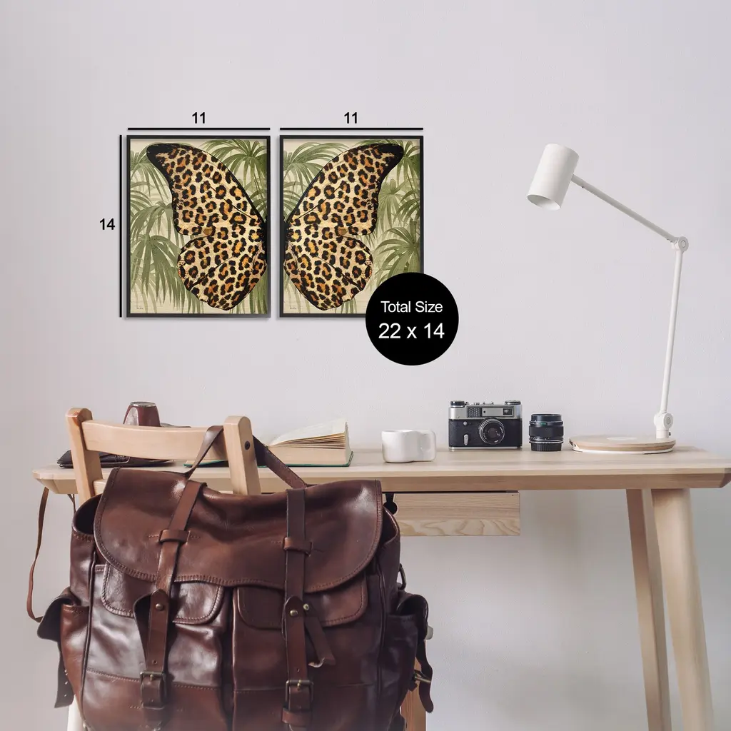 Fill any space in your home or office with our Framed Wall Art Sets. Our framed artwork is securely mounted into a 1.5-inch thick wood grain frame and ready to hang. Frames are available in three alluring styles: black, gray farmhouse and white. Stupell Wall Art is made in the USA.Features: Dimensions: 2 Piece Set, Each Panel is 11 x 1.5 x 14 FramedTwo Piece Framed Giclee Sets are available as 11"x14", 16"x20" or 24"x30" Panels. All Framed Giclee Products have a 1.5" Depth.Wall Art is Ready to Hang with Hardware Free Hanging. No installation required. For Easy Set Up Lean or Layer Artwork on Shelf or Against Wall.Curated Wall Art Sets make it easy for you complete the theme for any room. Our giclée prints are carefully mounted on a durable MDF backing, and then perfectly finished in a 1.5 inch thick woodgrain frame. Mounted frame colors include black, gray farmhouse and white. Made In USA.Artwork Relates To: Plant, Vegetation, Animal, Butterfly, Insect, Leaf, Wildlife, Nature, Rainforest, Pattern, Cheetah, Leopard, Botanical, Palm, FrondDesign by Amber Sterling