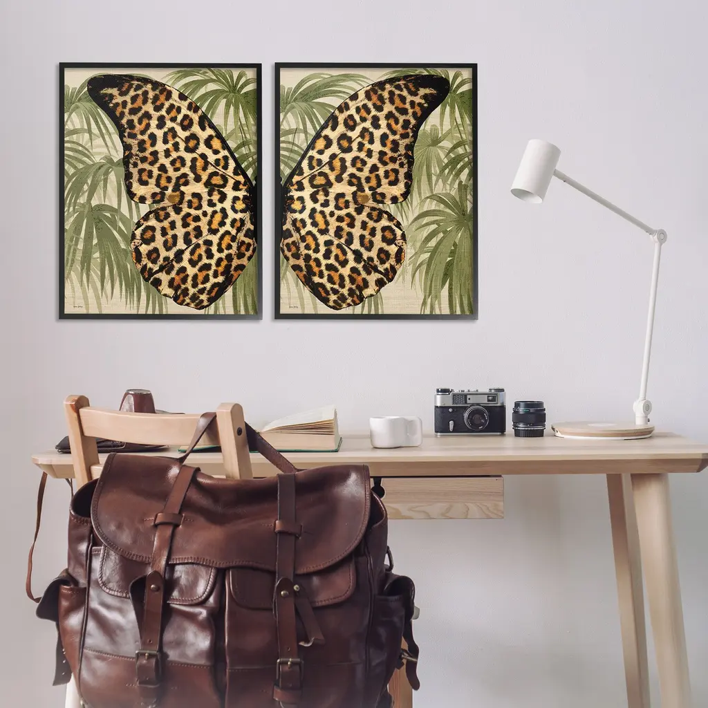 Fill any space in your home or office with our Framed Wall Art Sets. Our framed artwork is securely mounted into a 1.5-inch thick wood grain frame and ready to hang. Frames are available in three alluring styles: black, gray farmhouse and white. Stupell Wall Art is made in the USA.Features: Dimensions: 2 Piece Set, Each Panel is 11 x 1.5 x 14 FramedTwo Piece Framed Giclee Sets are available as 11"x14", 16"x20" or 24"x30" Panels. All Framed Giclee Products have a 1.5" Depth.Wall Art is Ready to Hang with Hardware Free Hanging. No installation required. For Easy Set Up Lean or Layer Artwork on Shelf or Against Wall.Curated Wall Art Sets make it easy for you complete the theme for any room. Our giclée prints are carefully mounted on a durable MDF backing, and then perfectly finished in a 1.5 inch thick woodgrain frame. Mounted frame colors include black, gray farmhouse and white. Made In USA.Artwork Relates To: Plant, Vegetation, Animal, Butterfly, Insect, Leaf, Wildlife, Nature, Rainforest, Pattern, Cheetah, Leopard, Botanical, Palm, FrondDesign by Amber Sterling