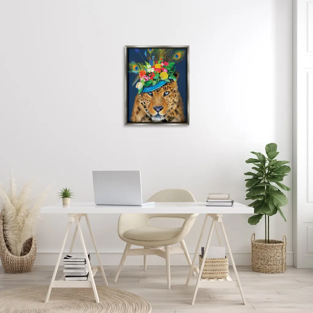 Stupell Cheetah With Feather Hat Framed Floater Canvas Wall Art Design By Kamdon Kreations - 25 X 31 - Grey