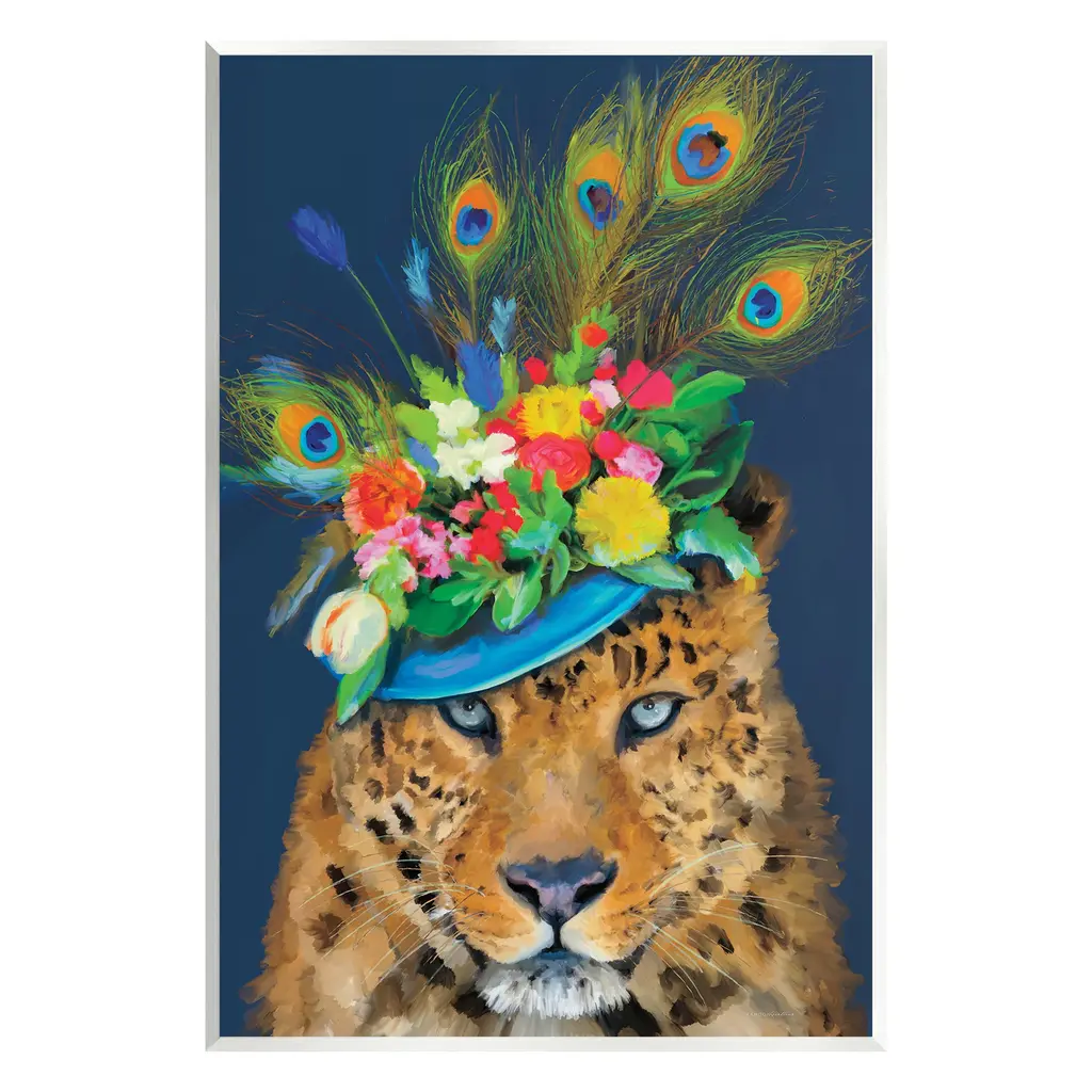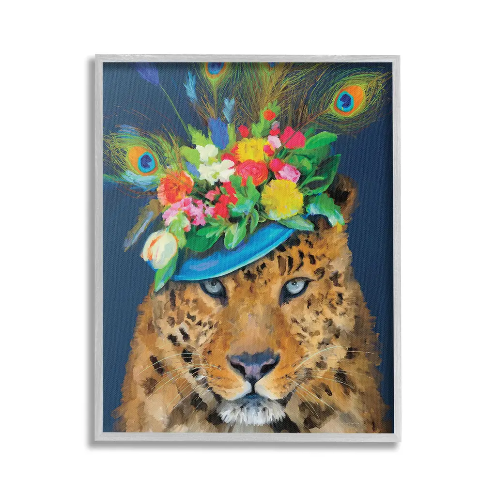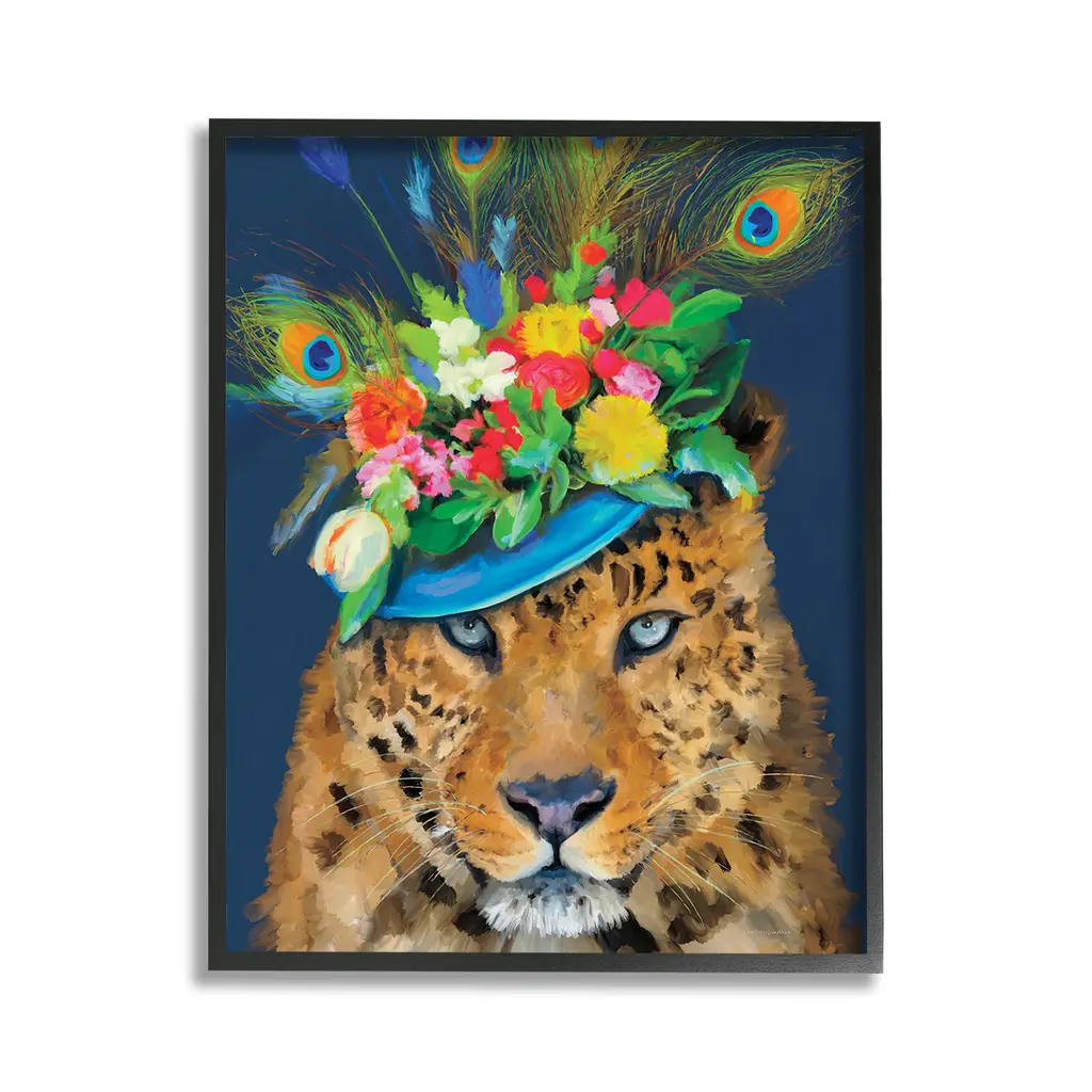 Stupell Cheetah With Feather Hat Framed Giclee Art Design By Kamdon Kreations - 16 X 20 - Black