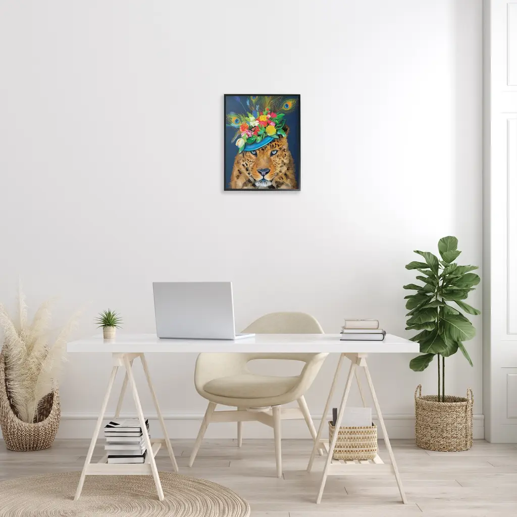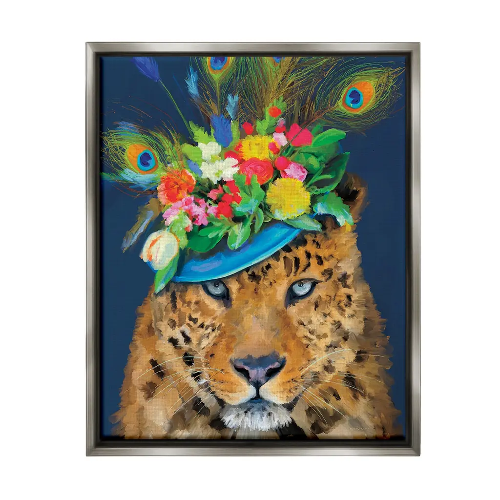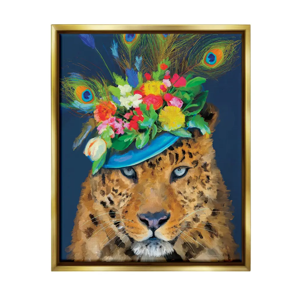Stupell Cheetah With Feather Hat Framed Giclee Art Design By Kamdon Kreations - 16 X 20 - Black