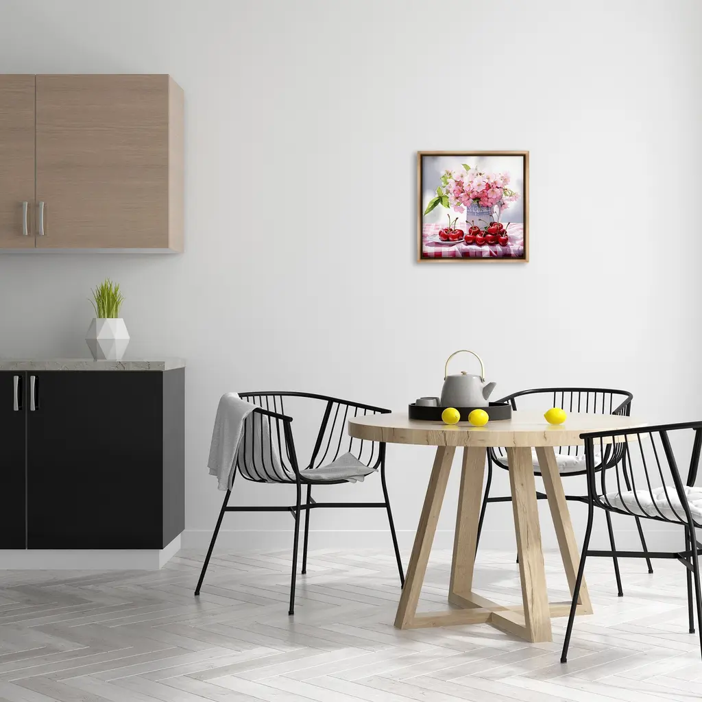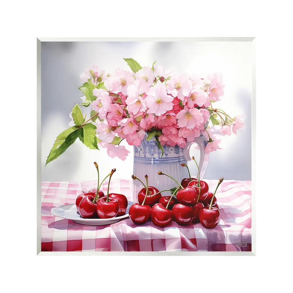 Elevate your home or office to the next level with Stupell Framed Floating Canvas Wall Art. Our premium hand-stretched canvas is mounted securely into a sturdy lightweight frame. The museum-style gap between the wrapped canvas and the box frame gives the illusion of floating artwork. Stupell Wall Art is made in the USA.Features: Dimensions: 18 x 1.7 x 18 Frame, 17 x 1.5 x 17 Canvas ArtFloating Frame Canvas Products are available in sizes 18"x18" and 25"x25". All Floating Frame Canvas Products have a 1.7" Depth.Wall Art is Ready to Hang with Hardware Free Hanging. No Installation required. For Easy Set Up Lean or Layer Artwork on Shelf or Against Wall. Artwork is Permently Fixed into the Frame.Our elevated 1.7" Thick Floating Frame is the perfect complement to our canvas style Wall Art. We use only the highest quality inks in house with industry leading printing solutions. Canvas is hand stretched over a durable wood foundation and then mounted securly into a Modern Box Frame. Made in the USA.Artwork Relates To: Food, Fruit, Plant, Produce, Flower, Cherry, Bouquet, Pink, Summer, Spring, Gingham, PatternDesign by RB
