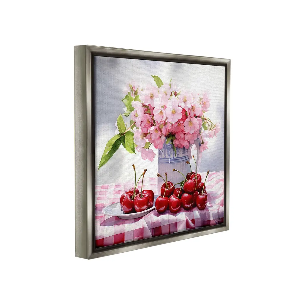 Elevate your home or office to the next level with Stupell Framed Floating Canvas Wall Art. Our premium hand-stretched canvas is mounted securely into a sturdy lightweight frame. The museum-style gap between the wrapped canvas and the box frame gives the illusion of floating artwork. Stupell Wall Art is made in the USA.Features: Dimensions: 18 x 1.7 x 18 Frame, 17 x 1.5 x 17 Canvas ArtFloating Frame Canvas Products are available in sizes 18"x18" and 25"x25". All Floating Frame Canvas Products have a 1.7" Depth.Wall Art is Ready to Hang with Hardware Free Hanging. No Installation required. For Easy Set Up Lean or Layer Artwork on Shelf or Against Wall. Artwork is Permently Fixed into the Frame.Our elevated 1.7" Thick Floating Frame is the perfect complement to our canvas style Wall Art. We use only the highest quality inks in house with industry leading printing solutions. Canvas is hand stretched over a durable wood foundation and then mounted securly into a Modern Box Frame. Made in the USA.Artwork Relates To: Food, Fruit, Plant, Produce, Flower, Cherry, Bouquet, Pink, Summer, Spring, Gingham, PatternDesign by RB