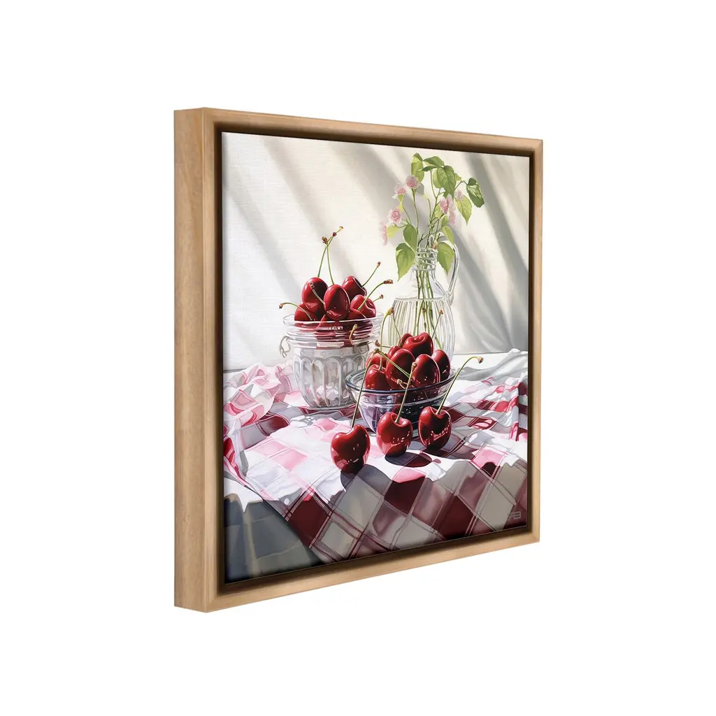 Elevate your home or office to the next level with Stupell Framed Floating Canvas Wall Art. Our premium hand-stretched canvas is mounted securely into a sturdy lightweight frame. The museum-style gap between the wrapped canvas and the box frame gives the illusion of floating artwork. Stupell Wall Art is made in the USA.Features: Dimensions: 18 x 1.7 x 18 Frame, 17 x 1.5 x 17 Canvas ArtFloating Frame Canvas Products are available in sizes 18"x18" and 25"x25". All Floating Frame Canvas Products have a 1.7" Depth.Wall Art is Ready to Hang with Hardware Free Hanging. No Installation required. For Easy Set Up Lean or Layer Artwork on Shelf or Against Wall. Artwork is Permently Fixed into the Frame.Our elevated 1.7" Thick Floating Frame is the perfect complement to our canvas style Wall Art. We use only the highest quality inks in house with industry leading printing solutions. Canvas is hand stretched over a durable wood foundation and then mounted securly into a Modern Box Frame. Made in the USA.Artwork Relates To: Food, Fruit, Plant, Produce, Flower, Cherry, Bouquet, Pink, Summer, Spring, Gingham, PatternDesign by RB
