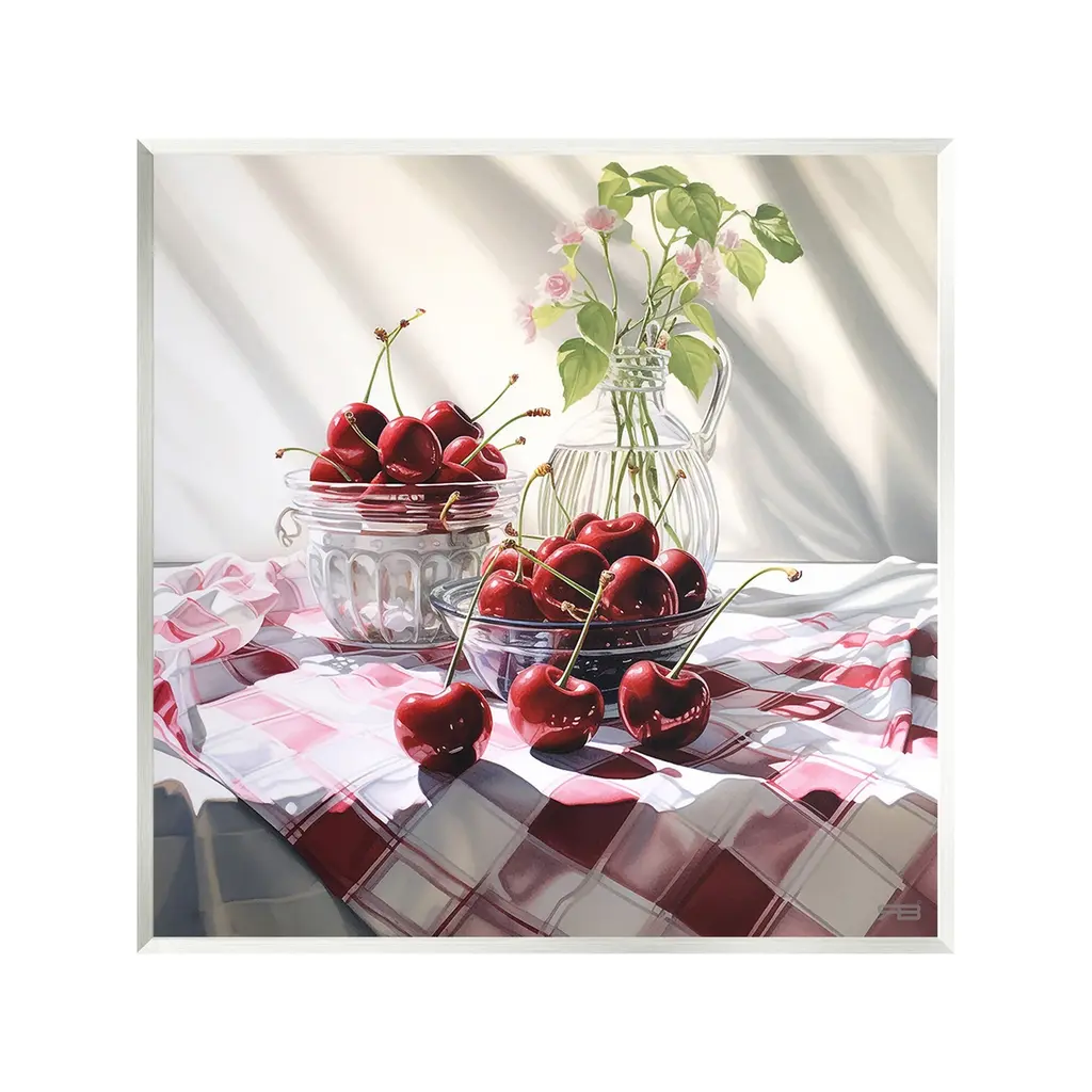Add dimension to any room with our textured Framed Giclee Artwork. Our framed artwork is securely mounted into a 1.5-inch thick wood grain frame and ready to hang. Frames are available in three alluring styles: black, gray farmhouse and white. In addition, you should check out our oversized options if you want a statement piece. Stupell Wall Art is made in the USA.Features: Dimensions: 12 x 1.5 x 12 FramedFramed Giclee Product Sizes Include 12"x12", 17"x17", and 24"x24". Framed Giclee Products have a 1.5" Depth. Wall Art is Ready to Hang with Hardware Free Hanging. No installation required. For Easy Set Up Lean or Layer Artwork on Shelf or Against Wall.Our giclée prints are carefully mounted on a durable MDF backing, and then perfectly finished in a 1.5 inch thick woodgrain frame. Mounted frame colors include black, gray farmhouse and white. Made In USA.Artwork Relates To: Food, Fruit, Plant, Produce, Flower, Cherry, Bouquet, Pink, Summer, Spring, Gingham, PatternDesign by RB